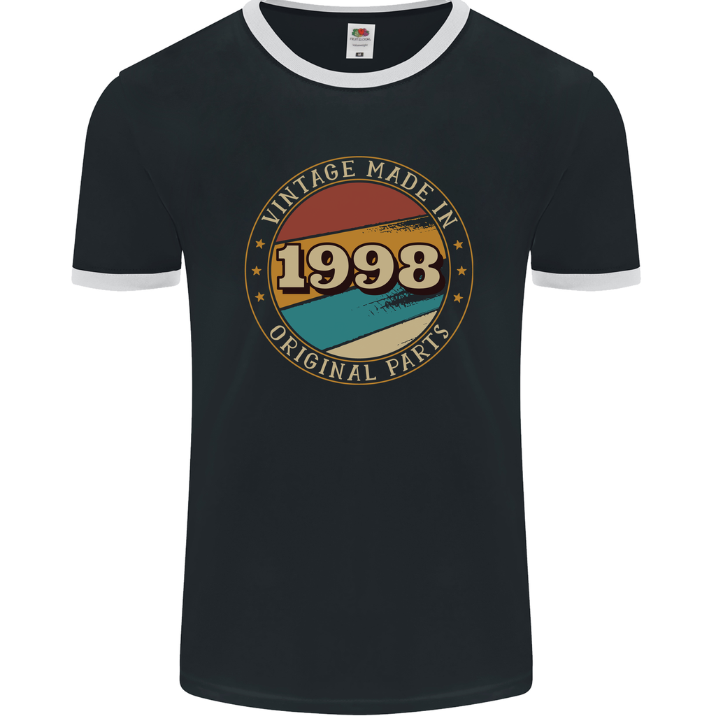Celebrate the milestone of turning 27 with our Vintage Made In 1998 Men's Ringer T-Shirt. This stylish tee is specifically designed for those born in 1998, making it the perfect gift for anyone reaching this significant birthday. Made from high-quality materials, this t-shirt combines comfort and nostalgia, allowing you to show off your birth year in a trendy way.