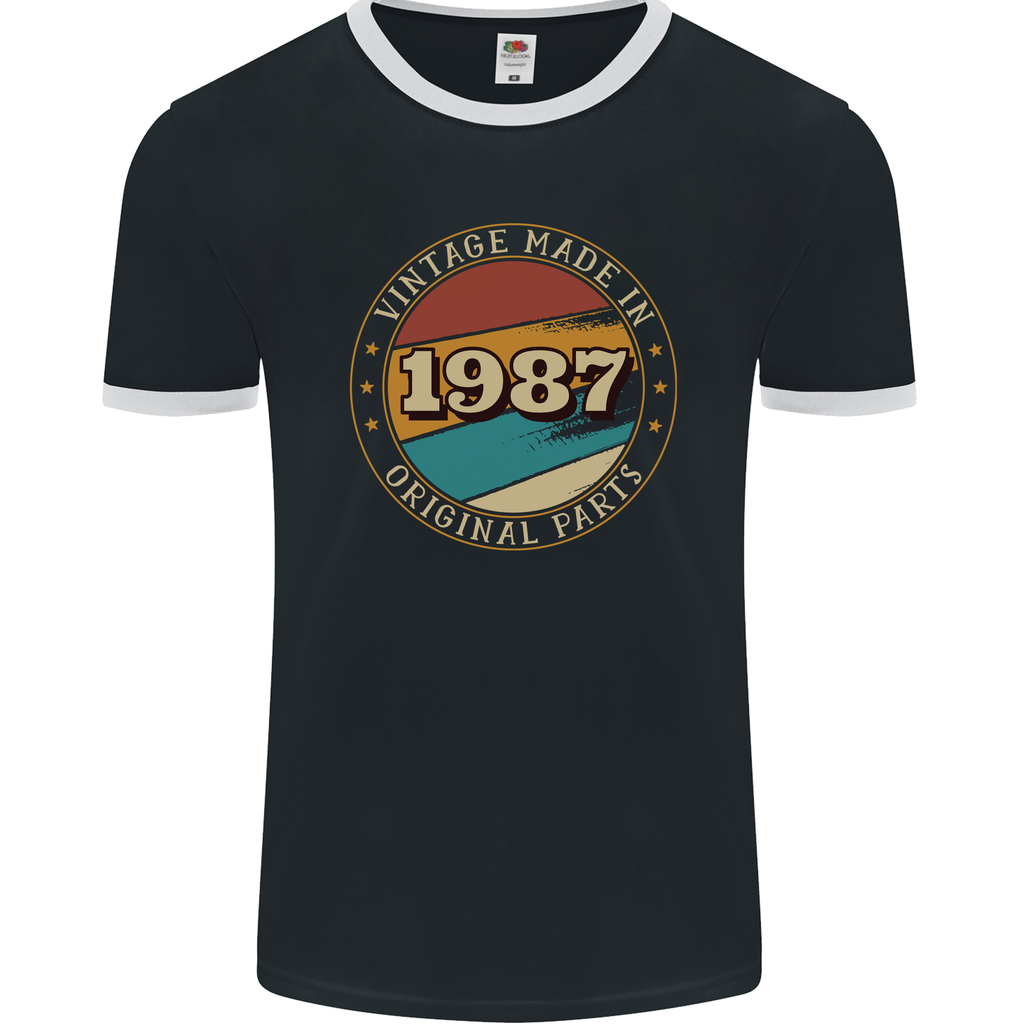 This ringer t-shirt features contrasting collar and sleeves that add a modern twist to a vintage look. With a bold graphic design that proudly states 'Made In 1987', it's a fantastic conversation starter and a great way to showcase your pride in your birth year.