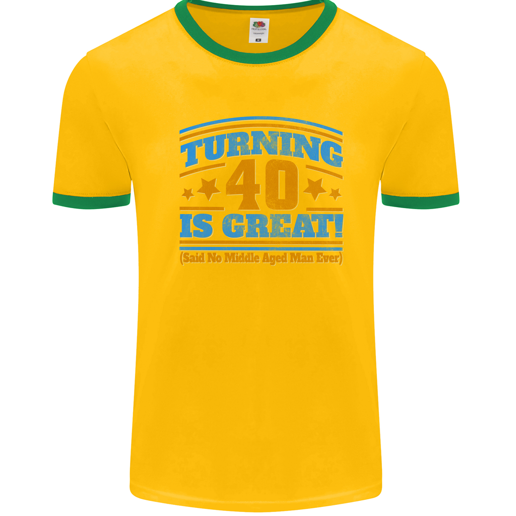Welcome to the 40th Birthday Turning 40 Is Great Year Old Men's Ringer T-Shirt - the perfect way to celebrate this milestone age in style and comfort! Crafted with high-quality materials and designed with care, this t-shirt is sure to make you stand out on your special day.