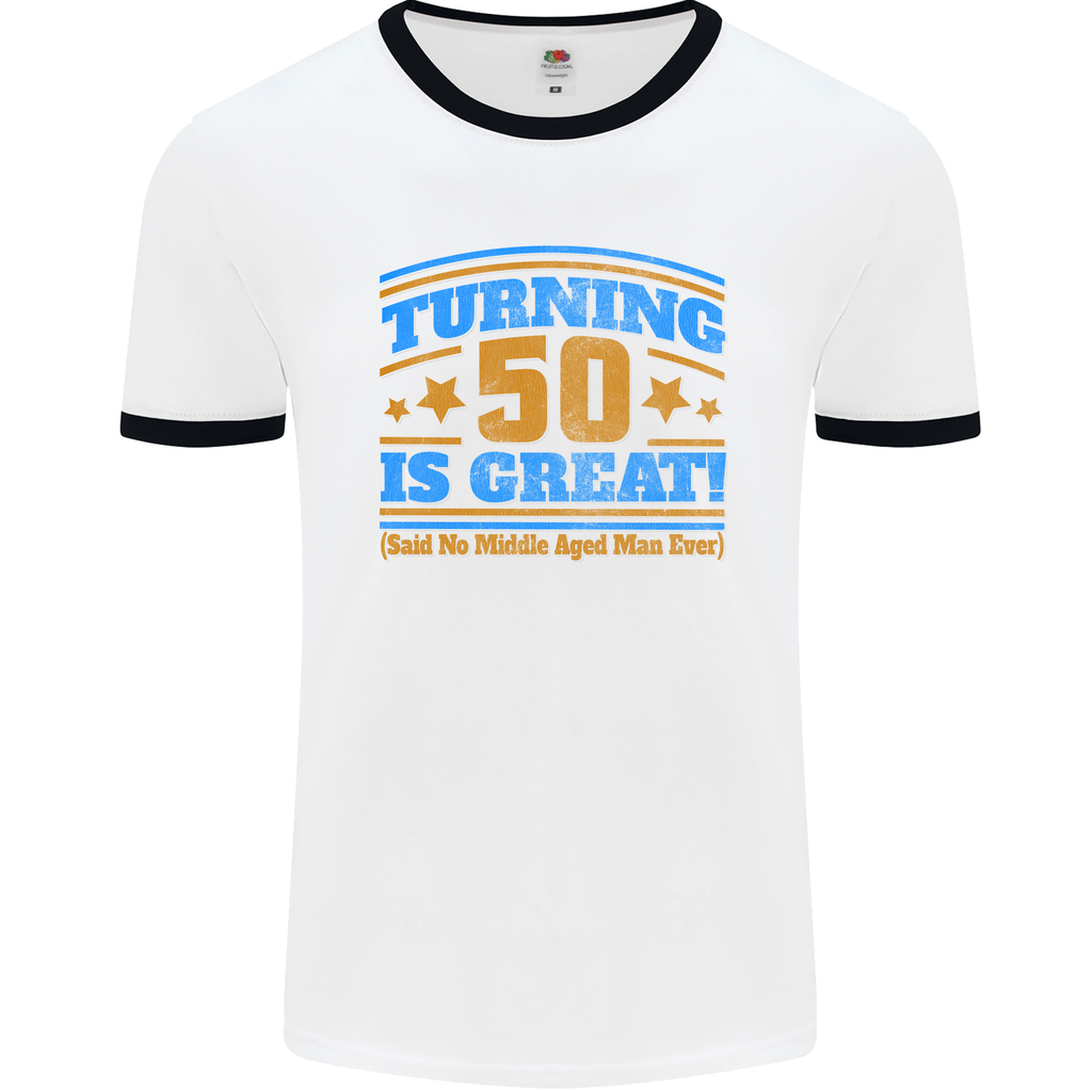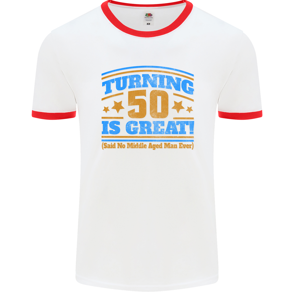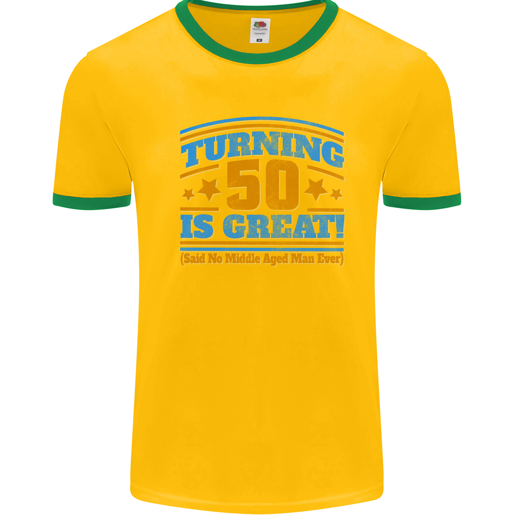 Welcome to the exclusive collection celebrating the milestone 50th birthday with a touch of style and humour. This Turning 50 Is Great Year Old Mens Ringer T-Shirt is a must-have for the man who embraces the wisdom and vitality that come with reaching half a century.