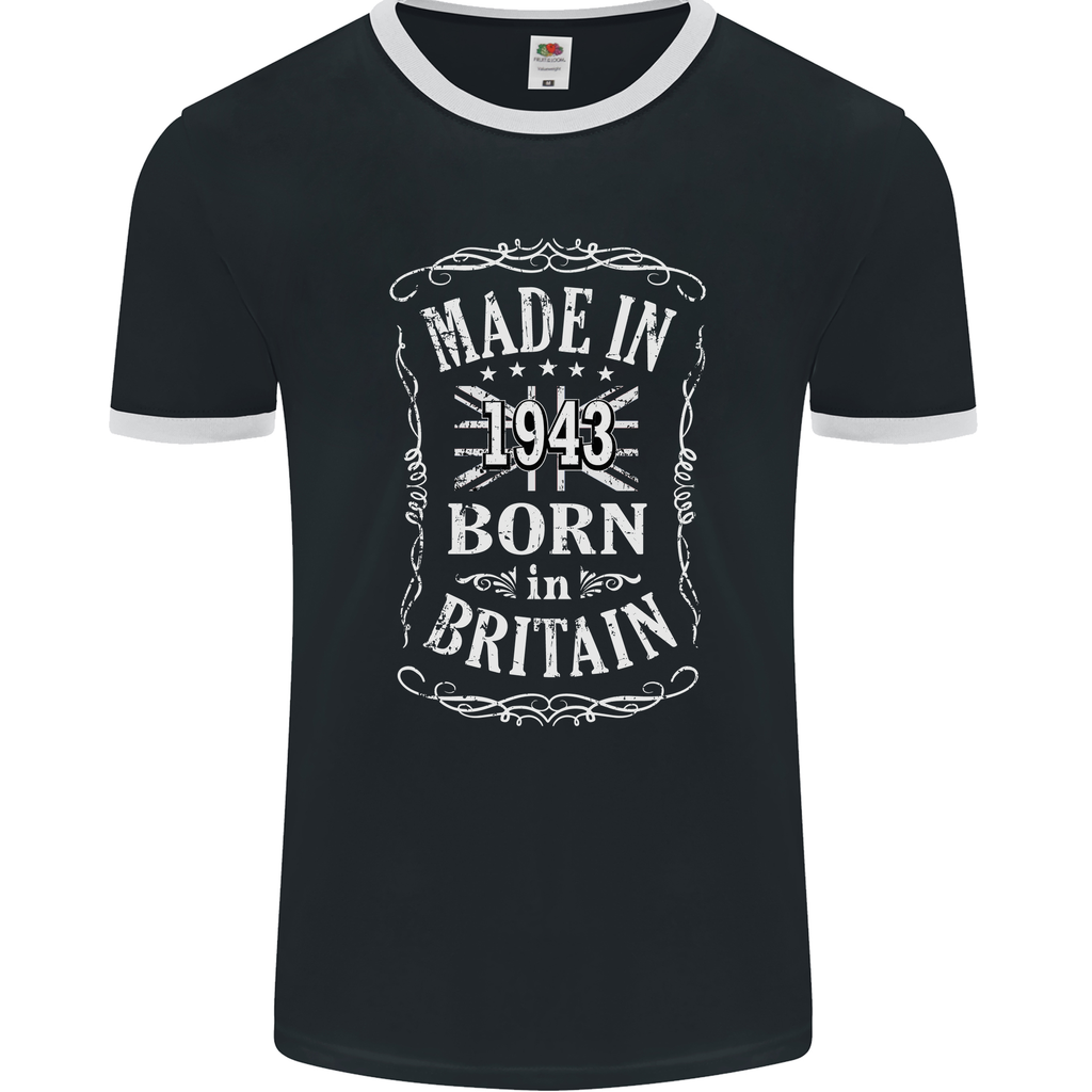 Born In Britain 82nd Birthday Made 1943 Mens Ringer T-Shirt FotL