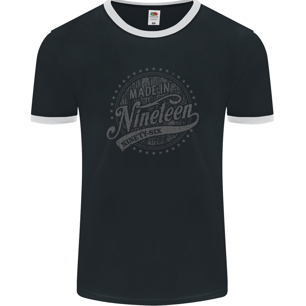 Distressed 29th Birthday Made In 1996 Mens Ringer T-Shirt FotL Black/White