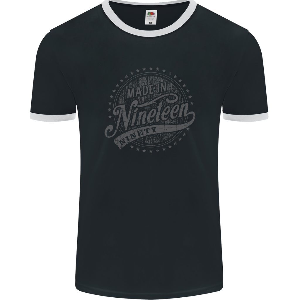 Distressed 35th Birthday Made In 1990 Mens Ringer T-Shirt FotL Black/White