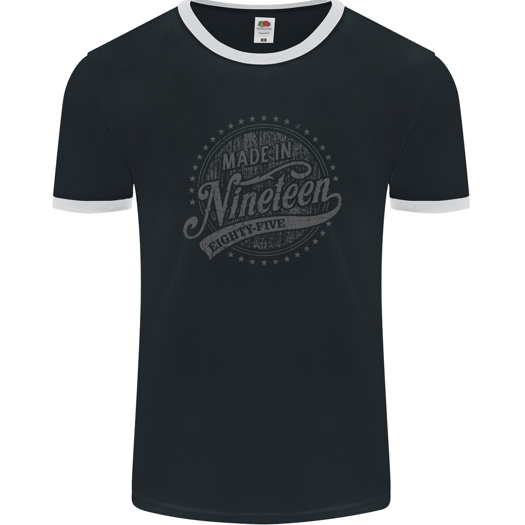 Distressed 40th Birthday Made In 1985 Mens Ringer T-Shirt FotL Black/White