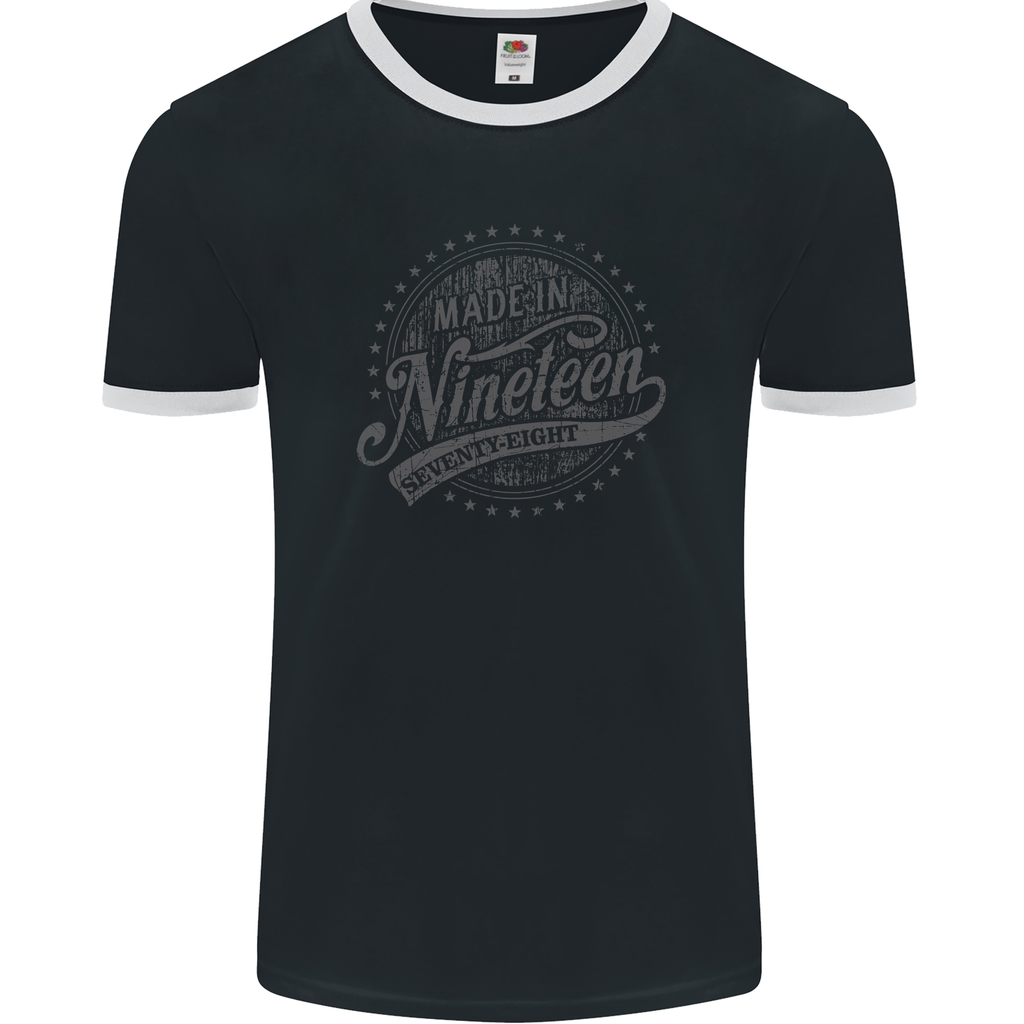 Distressed 47th Birthday Made In 1978 Mens Ringer T-Shirt FotL Black/White