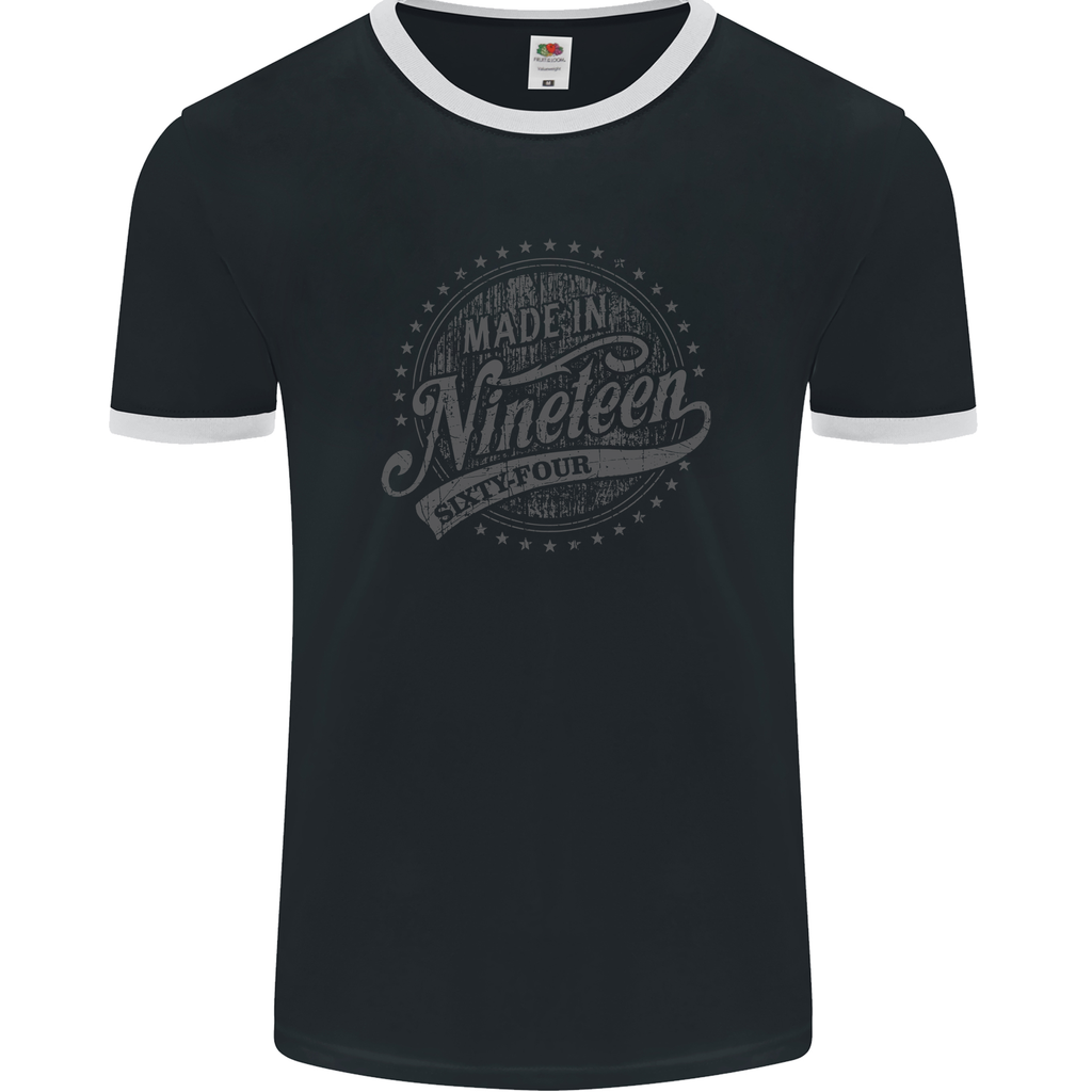 Distressed 61st Birthday Made In 1964 Mens Ringer T-Shirt FotL Black/White