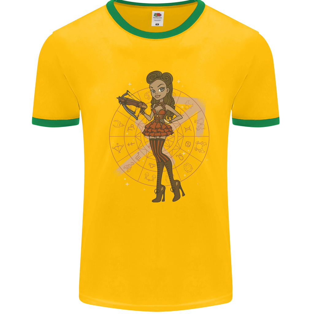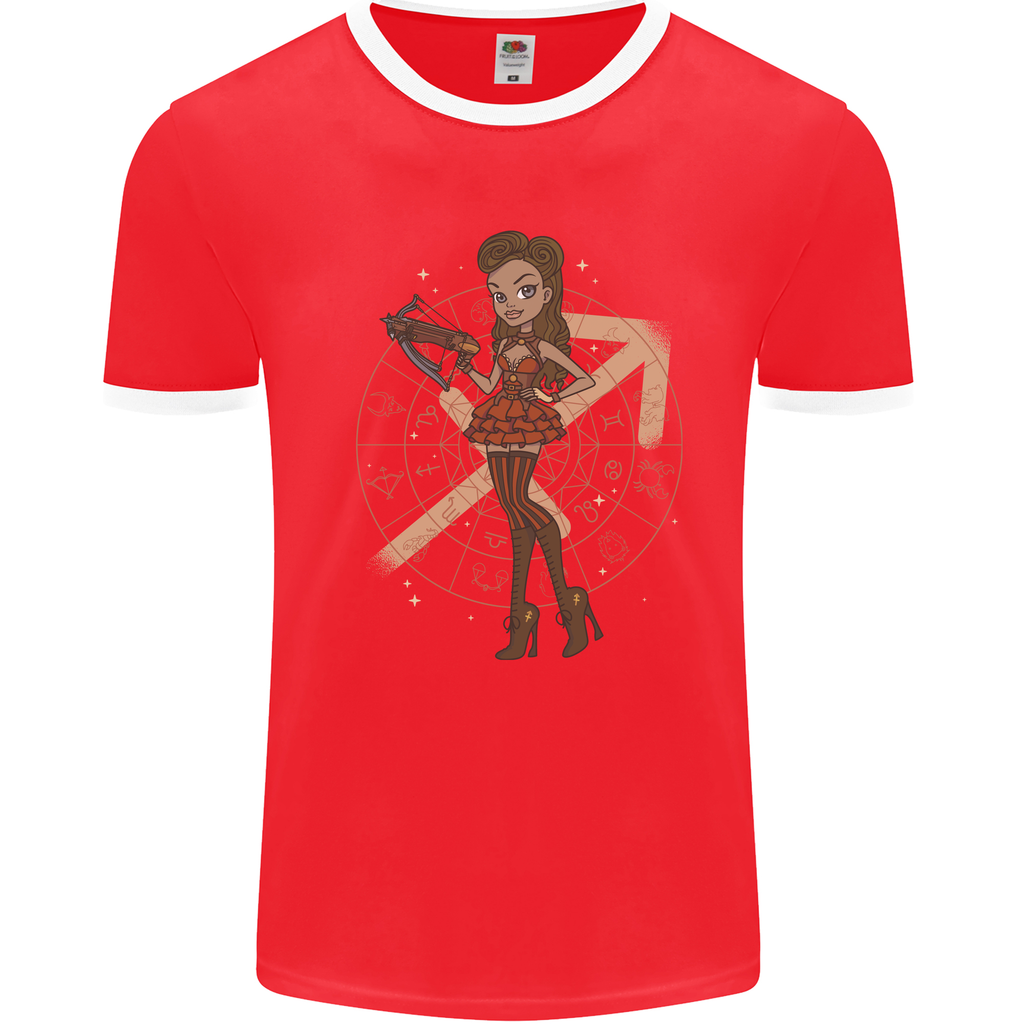 Step into the mystique of the cosmos with our exquisite Sagittarius Steampunk Woman Star Sign Men's Ringer T-Shirt. Embrace your zodiac sign in style with this unique garment that combines the elegance of steampunk design with the celestial charm of the Sagittarius star sign.
