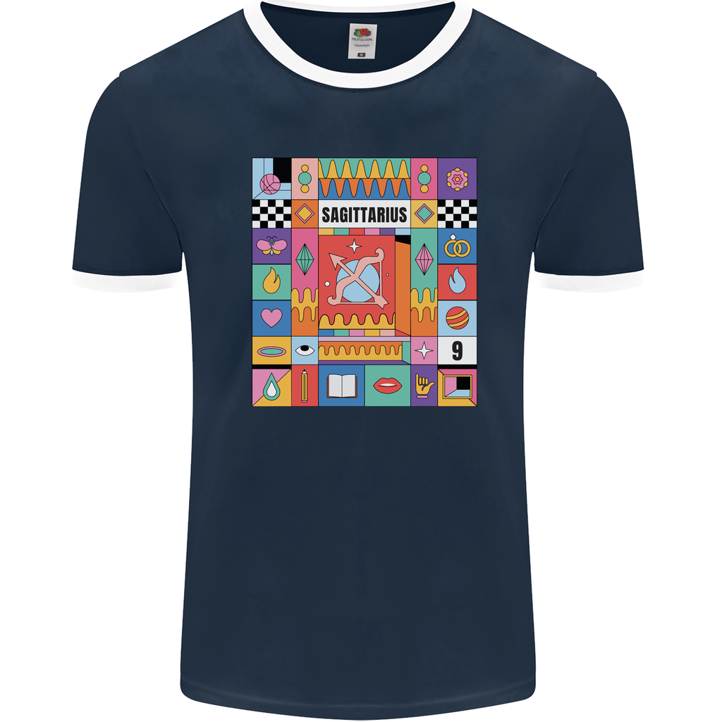 Designed with high-quality materials and attention to detail, this ringer t-shirt is not just a piece of clothing, but a statement of your zodiac identity. With its vibrant design featuring the Sagittarius symbol, you'll stand out in a crowd and showcase your individuality.