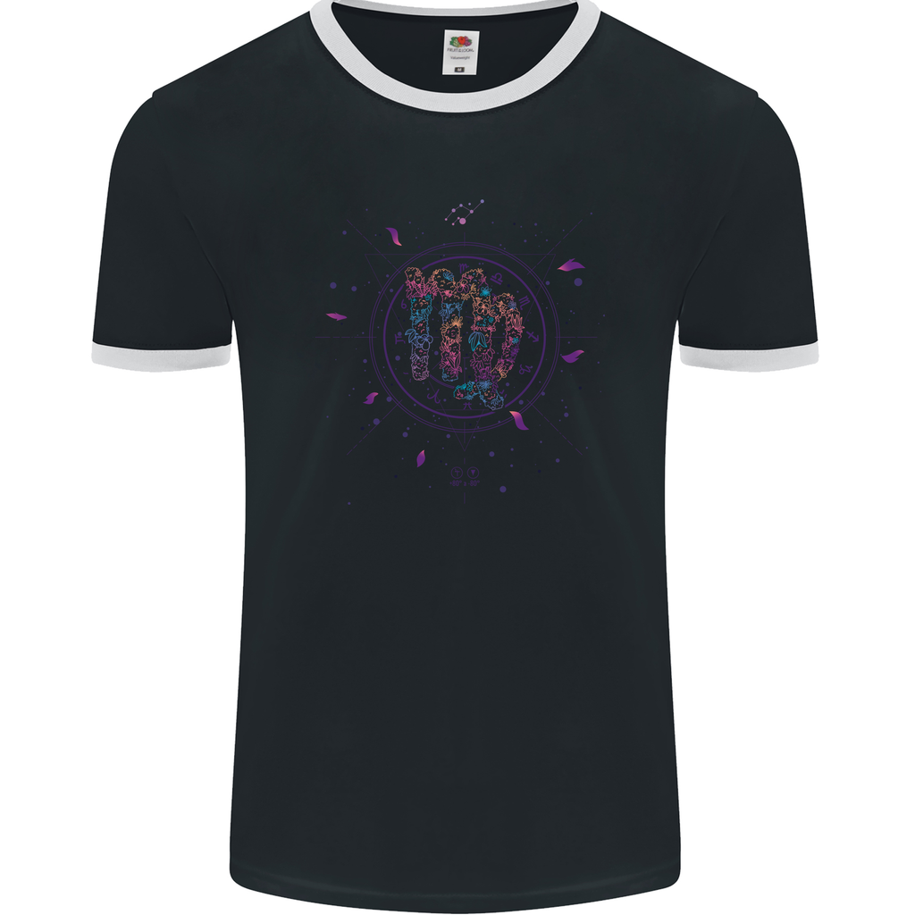 Step into the world of celestial fashion and make a statement that's uniquely you. Embrace the magic of the universe and let your style shine bright with the Vigo Neon Star Sign Zodiac Astrological Men's Ringer T-Shirt.