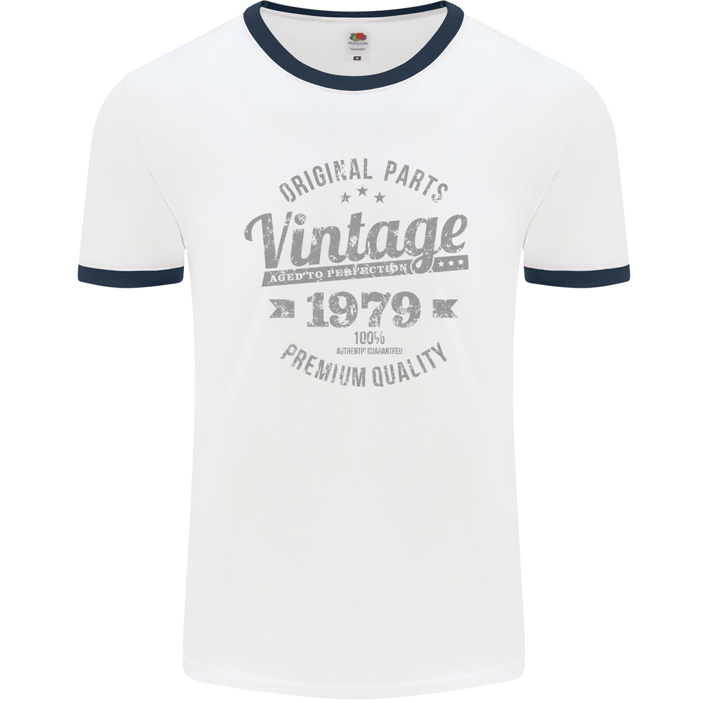 Crafted with comfort in mind, this shirt features a classic ringer style that combines vintage aesthetics with modern fit. It showcases the year 1979 prominently, making it an ideal keepsake for anyone born in that year. Whether you're planning a birthday bash or simply want to reflect on 46 amazing years, this T-shirt is a must-have for your wardrobe.