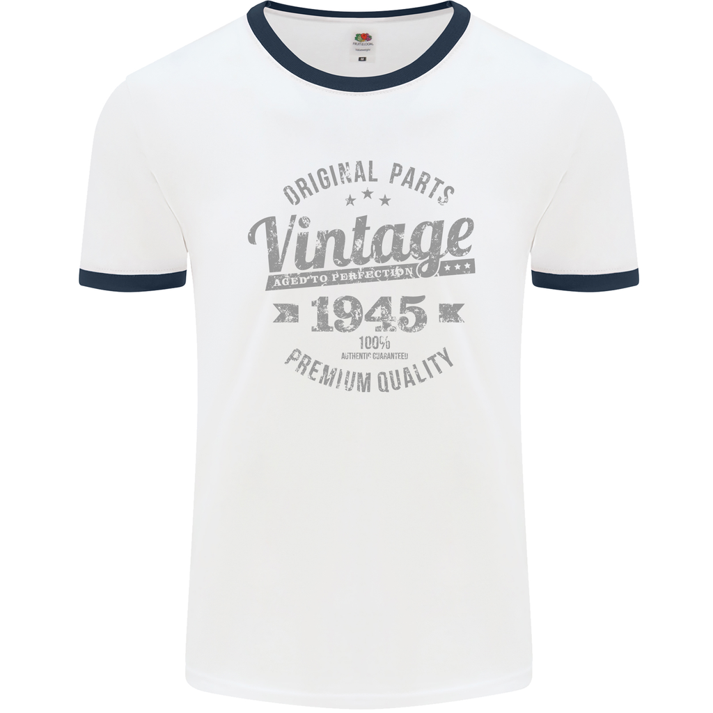 Celebrate a remarkable milestone with our Vintage Year 80th Birthday 1945 Men's Ringer T-Shirt! Designed to highlight the incredible journey of those born in 1945, this stylish T-shirt showcases a unique vintage flair that pays tribute to the unforgettable year of your loved one's birth.