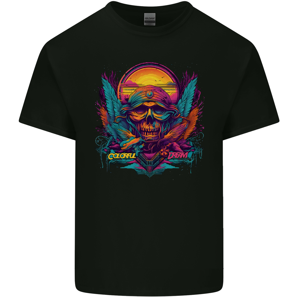 The Colourful Dream Sunset Skull Kids T-Shirt is more than just a piece of clothing; it's a statement. Kids can express their individuality through this artistic design that stands out from the crowd. Plus, parents will appreciate the ease of care that comes with this garment, as it is machine washable and maintains its vibrant colours even after multiple washes.