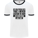 Whether you're pairing it with jeans for a laid-back look or dressing it up with a blazer for a quirky twist on smart-casual, this t-shirt is versatile and effortlessly stylish. Embrace your playful side and let the world know that you've got a sense of humour with the "My Girlfriend Says I Never Funny" Slogan Men's Ringer T-Shirt.