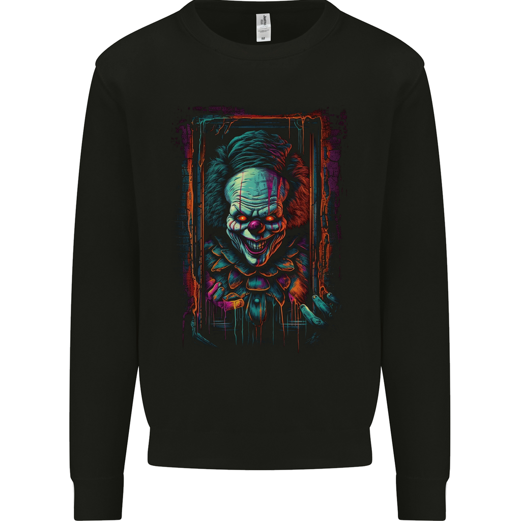 Express your dark side with our Dark Evil Clown Halloween Men's Sweatshirt Jumper. This unique design captures the essence of Halloween with a sinister twist, featuring an evil clown peering through a window, adding an element of mystery and thrill to your wardrobe.