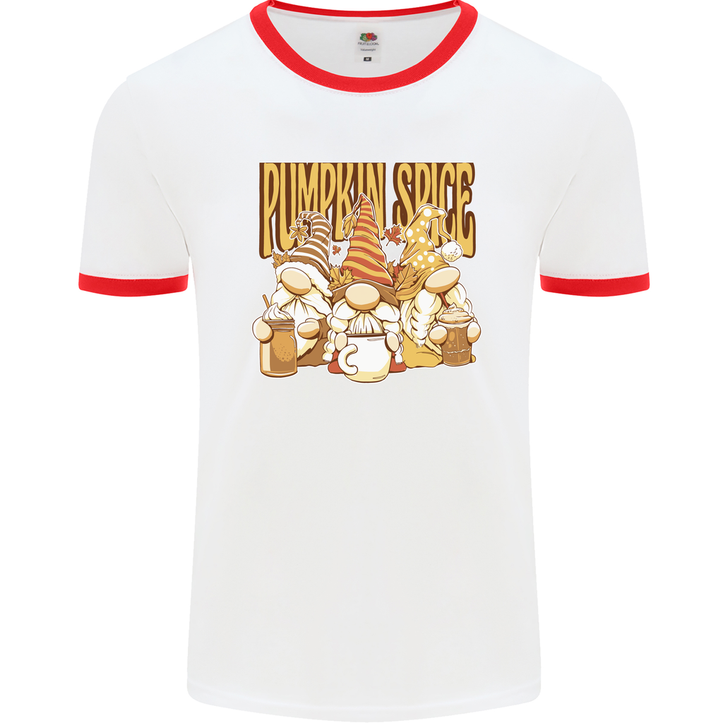 Welcome to the enchanting world of Halloween fashion with our Pumpkin Spice Gnomes Men's Ringer T-Shirt! Embrace the spooky season in style and comfort with this unique and eye-catching tee.