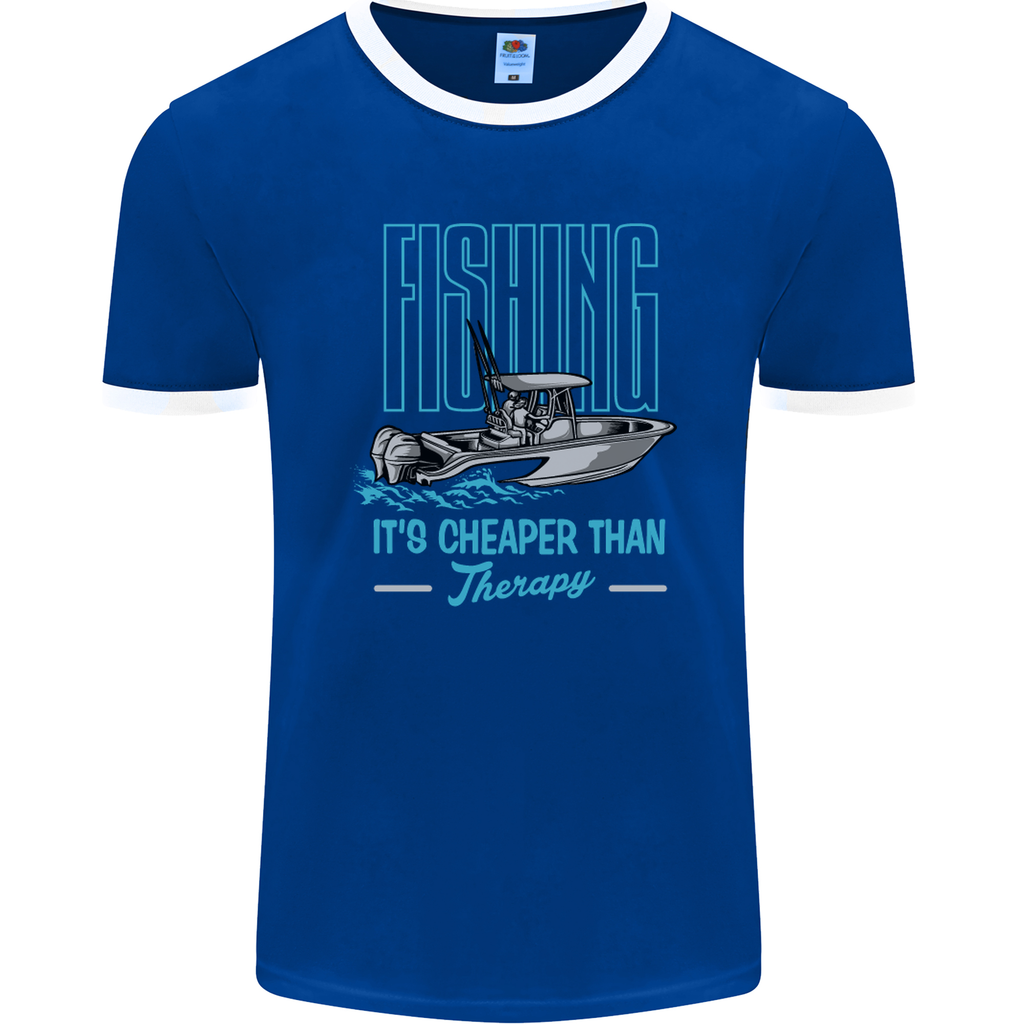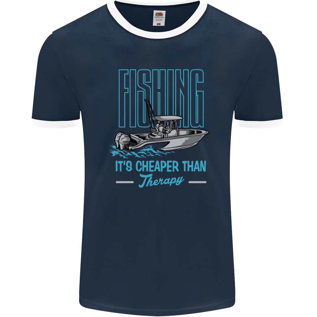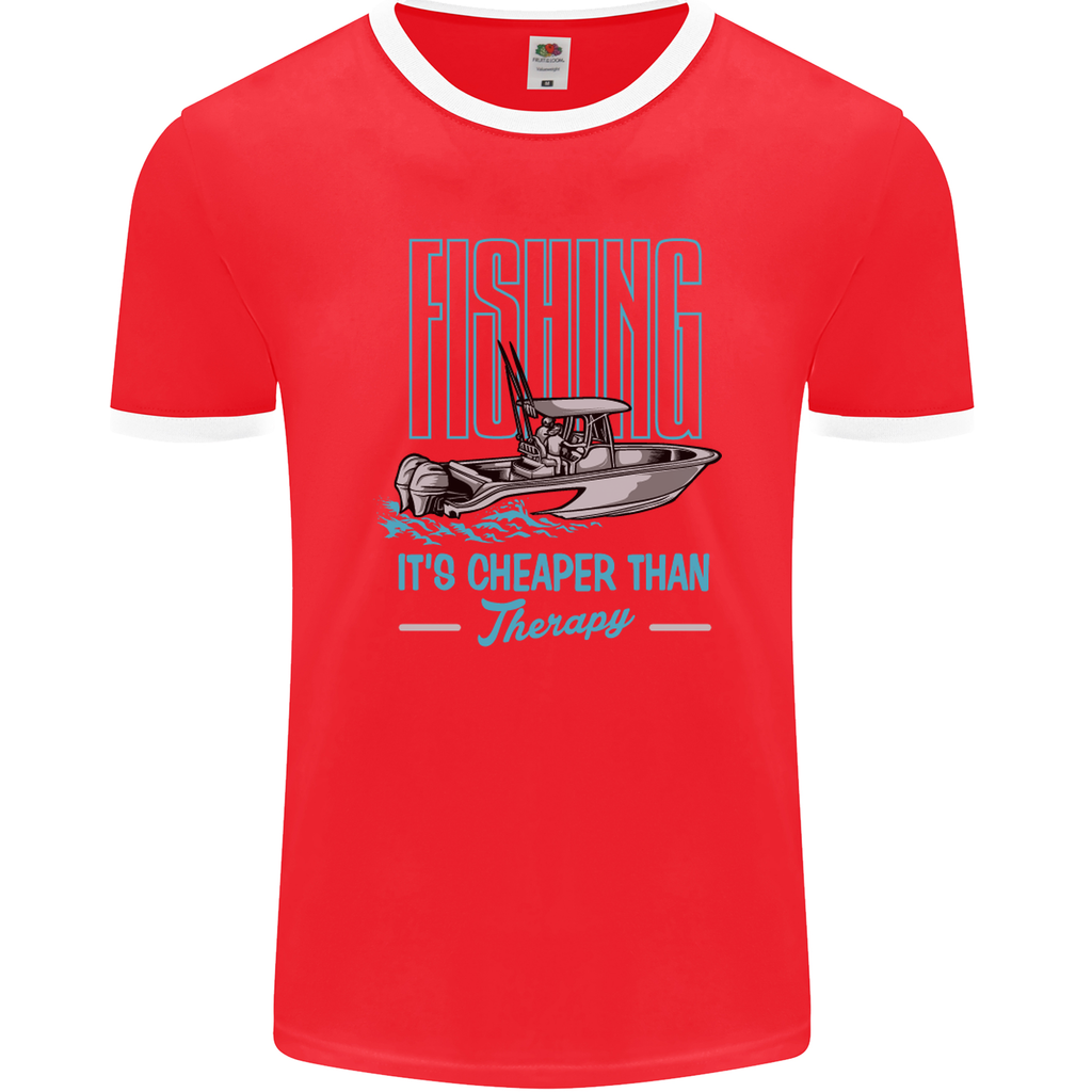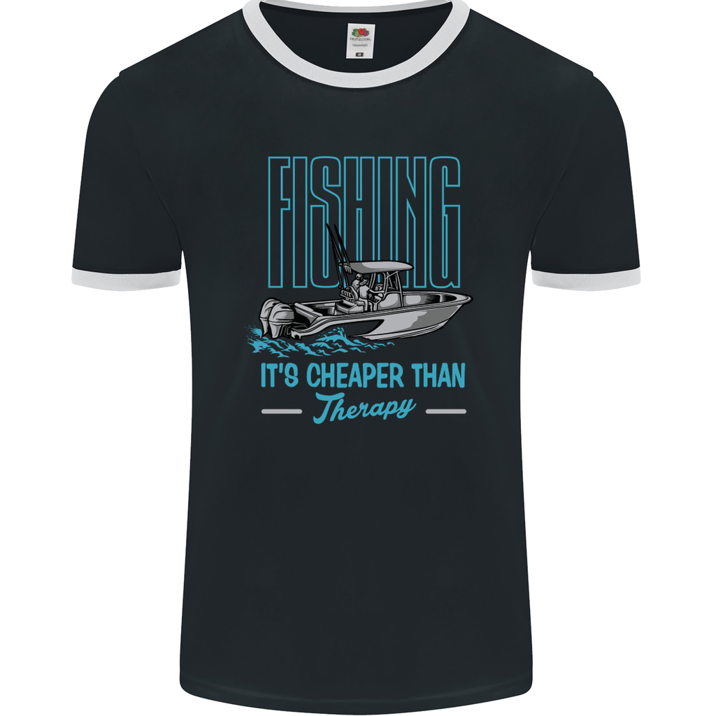 Fishing Its Cheaper Than Therapy Fisherman Mens Ringer T-Shirt FotL