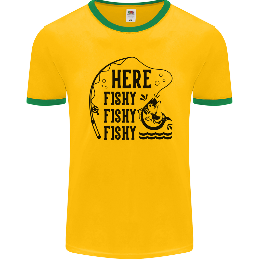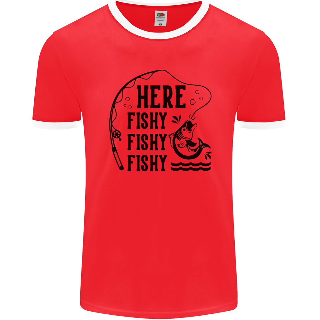 Don't miss out on the opportunity to showcase your sense of humour and love for fishing with our "Here Fishy Fishy" men's ringer t-shirt. Order yours today and make a splash on your next fishing trip!