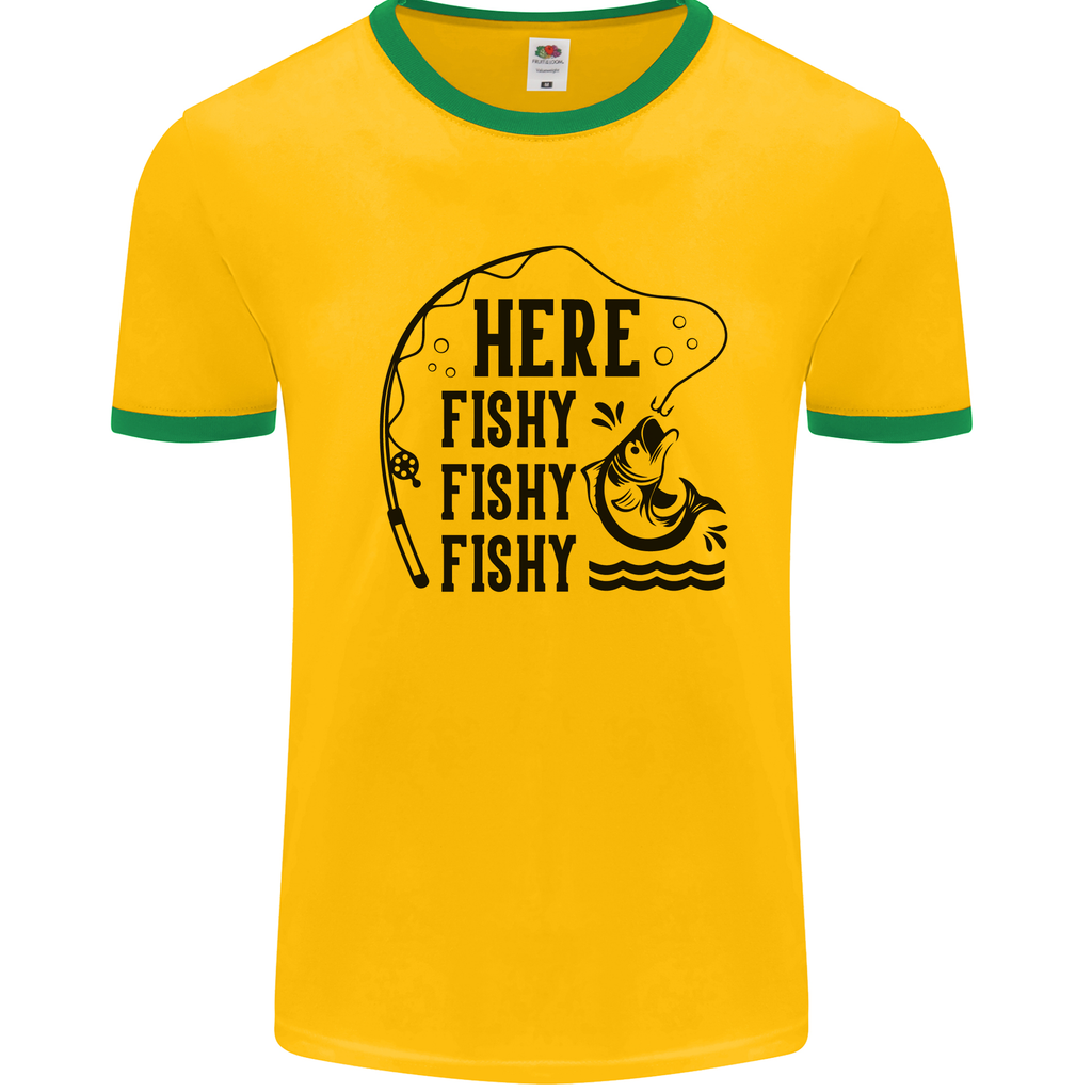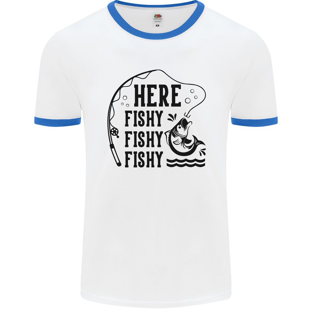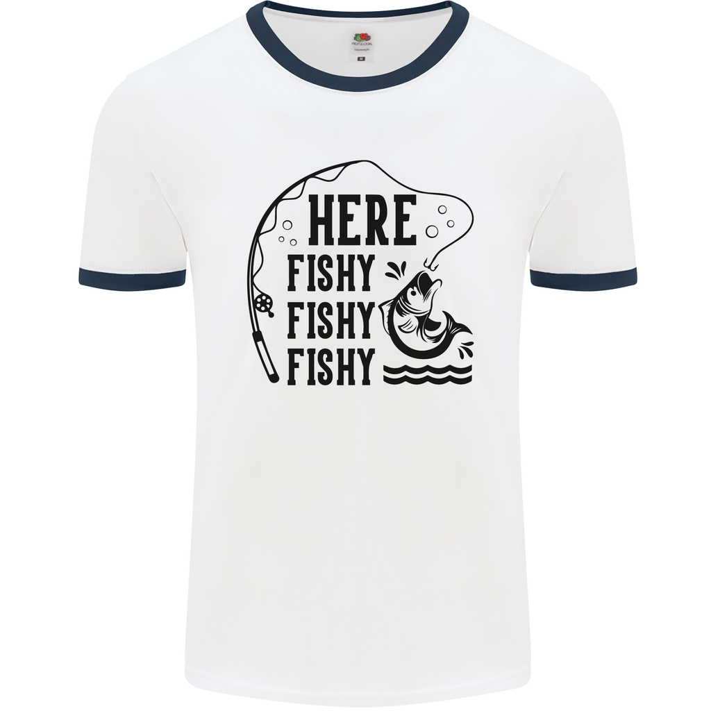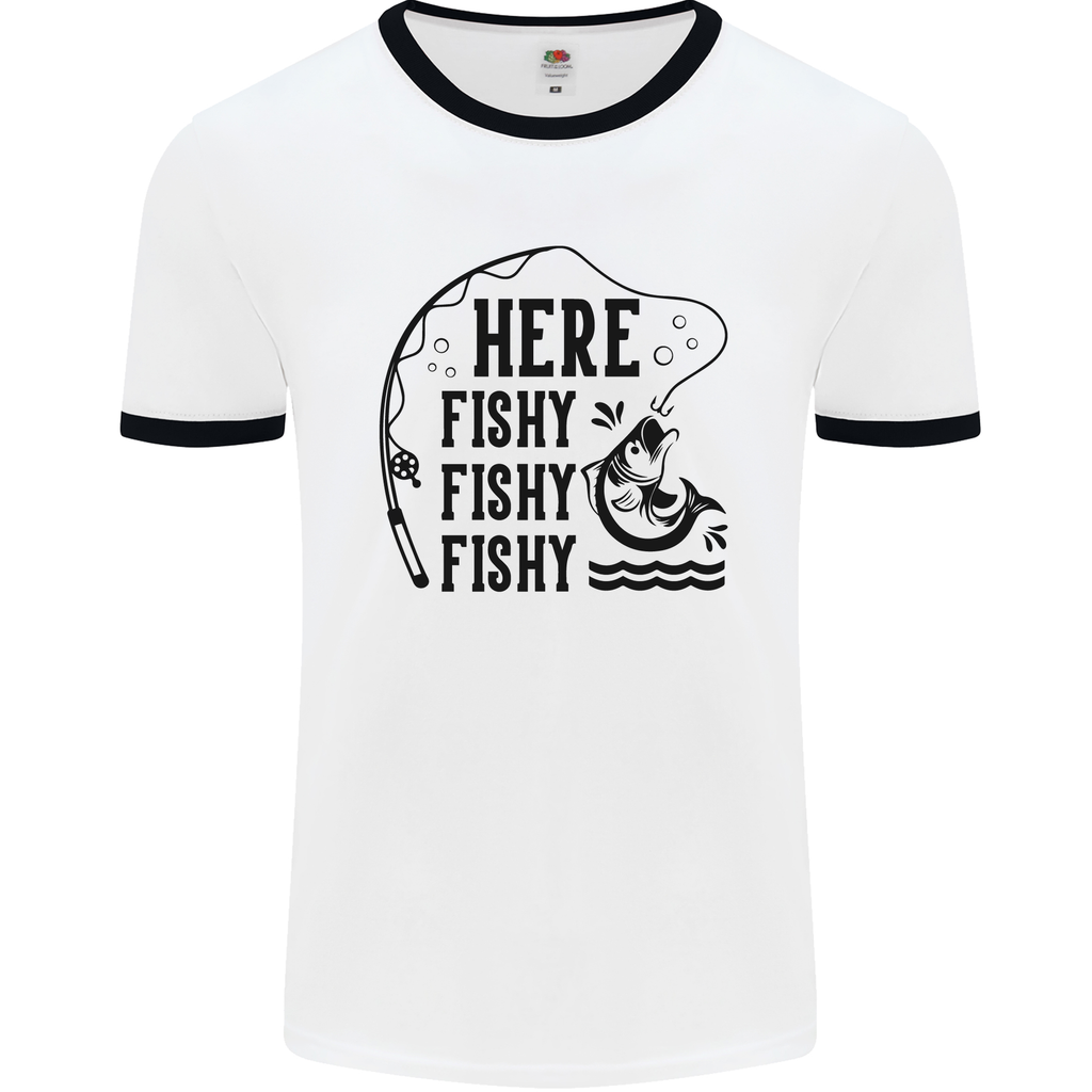 Embrace your inner fisherman with the Here Fishy Fishy Funny Fishing Fisherman Men's Ringer T-Shirt. It's more than just apparel; it's a statement of your passion for the great outdoors and the thrill of the catch. Get yours today and let your fishing spirit shine!
