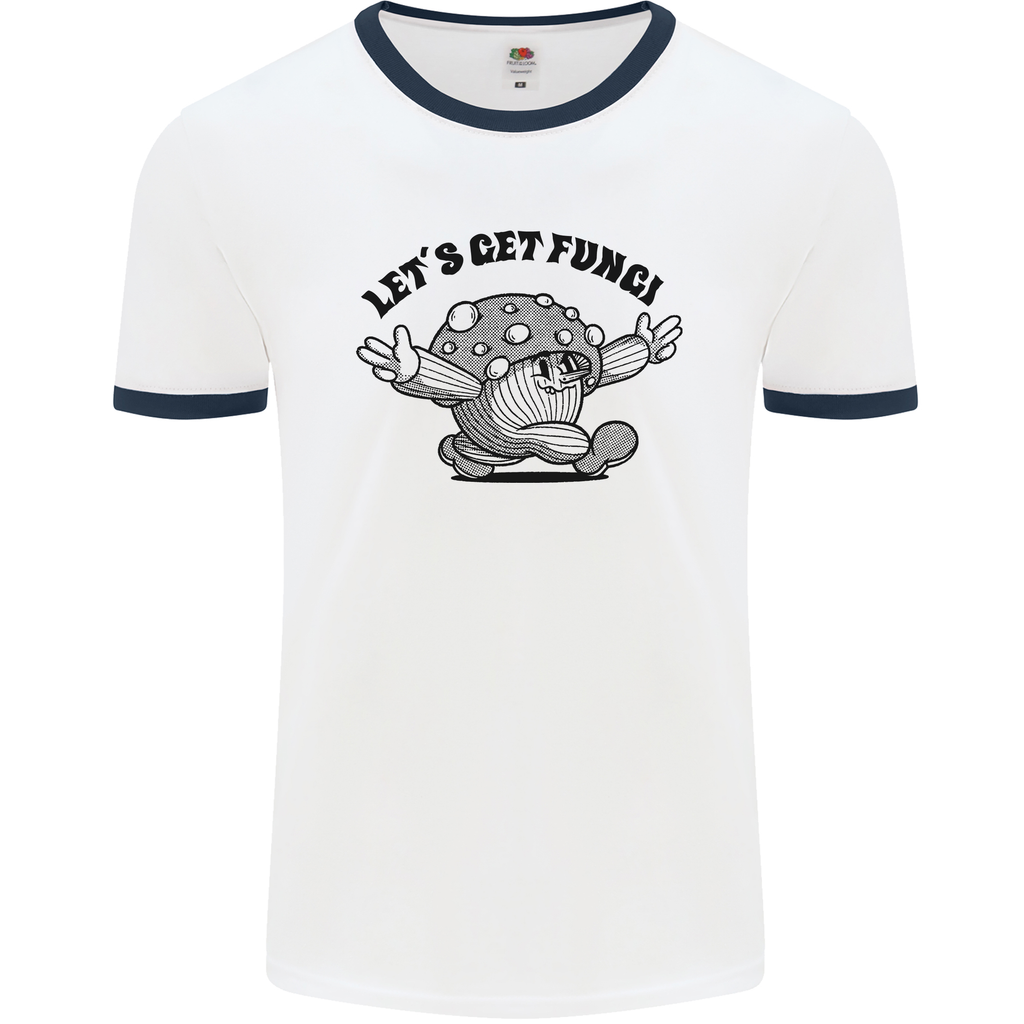 This t-shirt is not just an article of clothing, but a piece of wearable art that allows you to express yourself in a bold and unique way. Make a statement with the Lets Get Fungi Magic Mushrooms LSD Men's Ringer T-Shirt and let your style shine through.