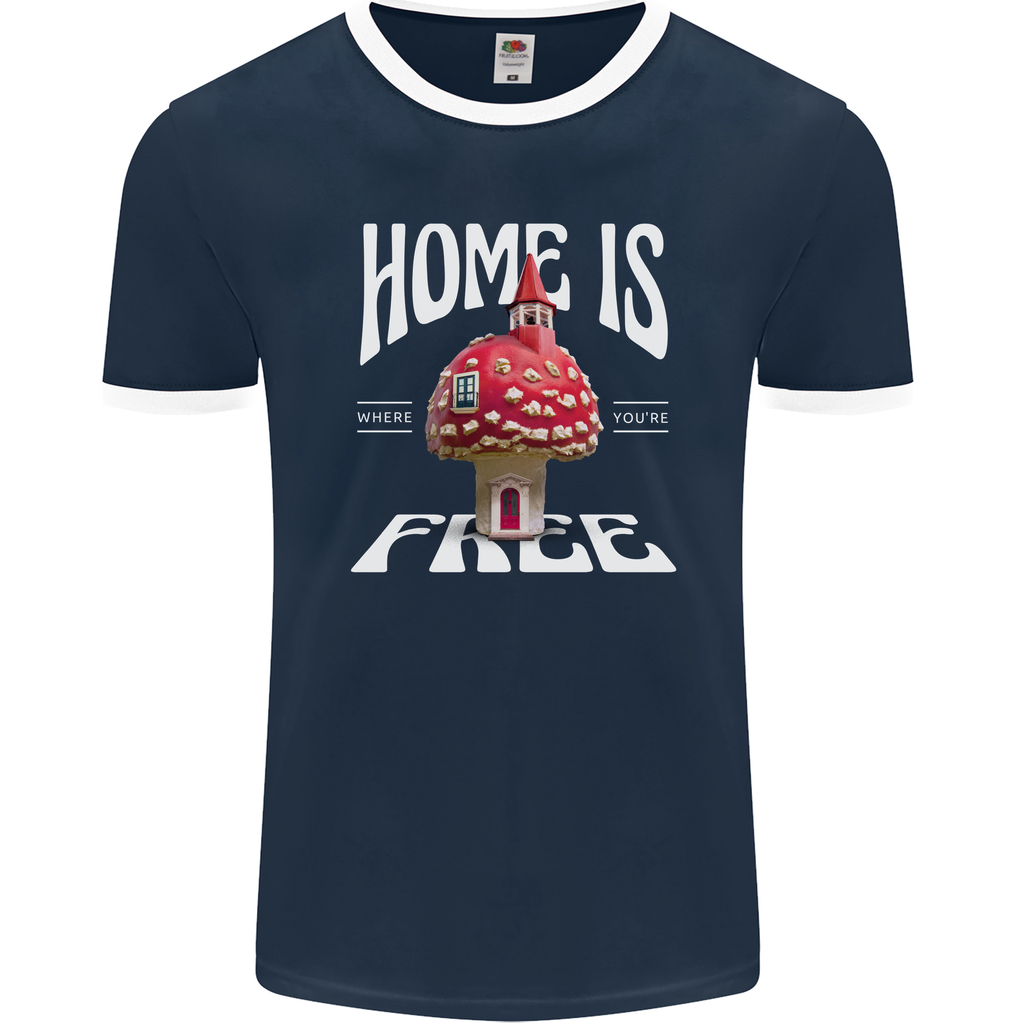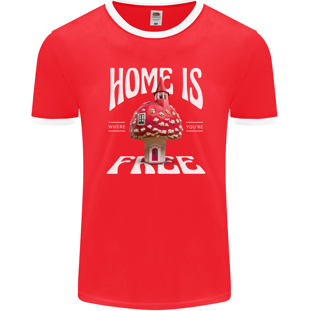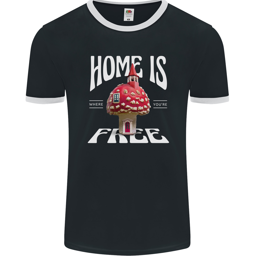 Embrace the spirit of freedom and individuality with the Mushrooms Home is Where You're Free Mens Ringer T-Shirt. Add it to your collection today and elevate your casual look with a touch of charm and comfort.