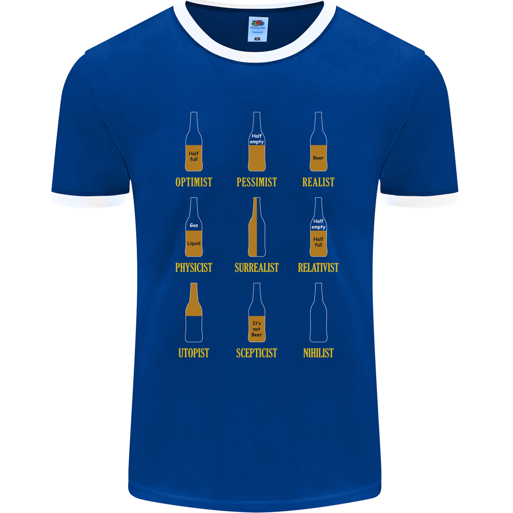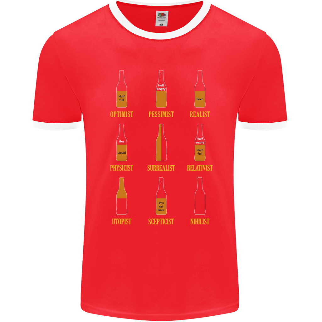 Welcome to the world of the Optimism Pessimism Beer Alcohol Funny Mens Ringer T-Shirt FotL! This t-shirt is not just a piece of clothing; it's a statement of your unique style and sense of humour.