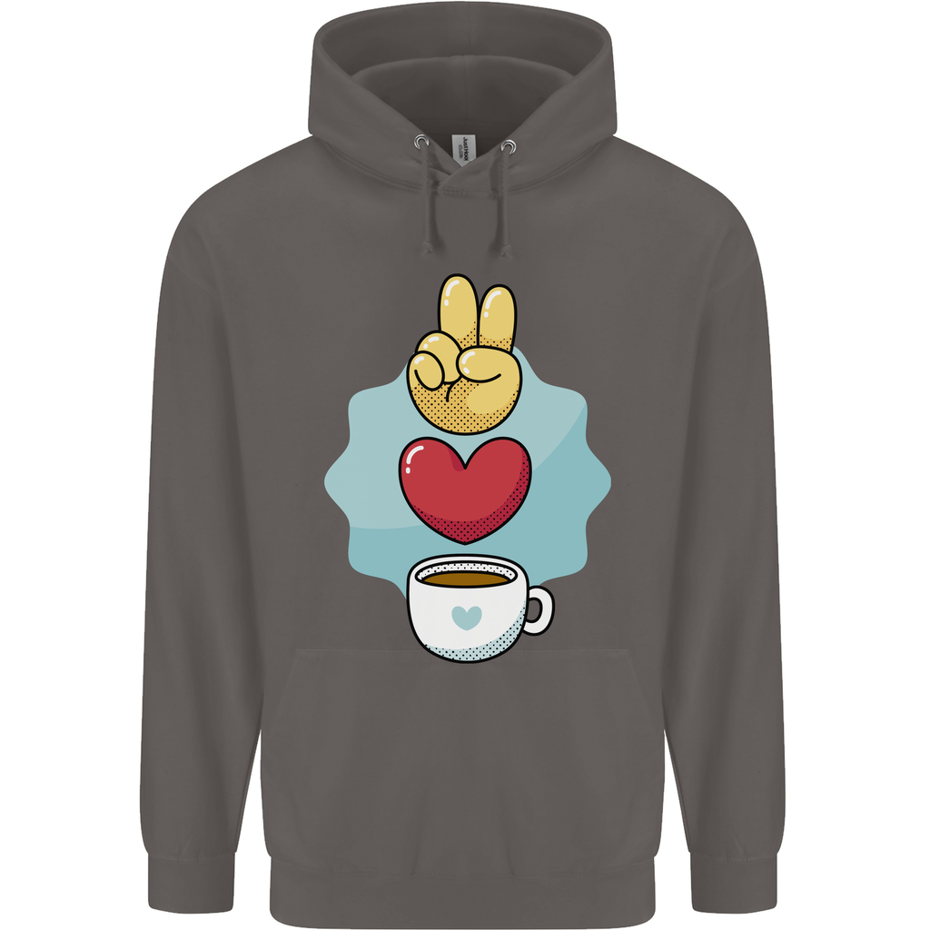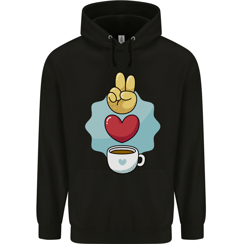 The 'Peace Love Coffee' Men's hoodie is available in various sizes to guarantee the perfect fit. Pair it with your favourite jeans and sneakers for an effortlessly cool look.
