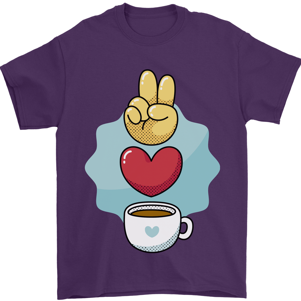Peace Love Coffee Mens T-Shirt 100% Cotton