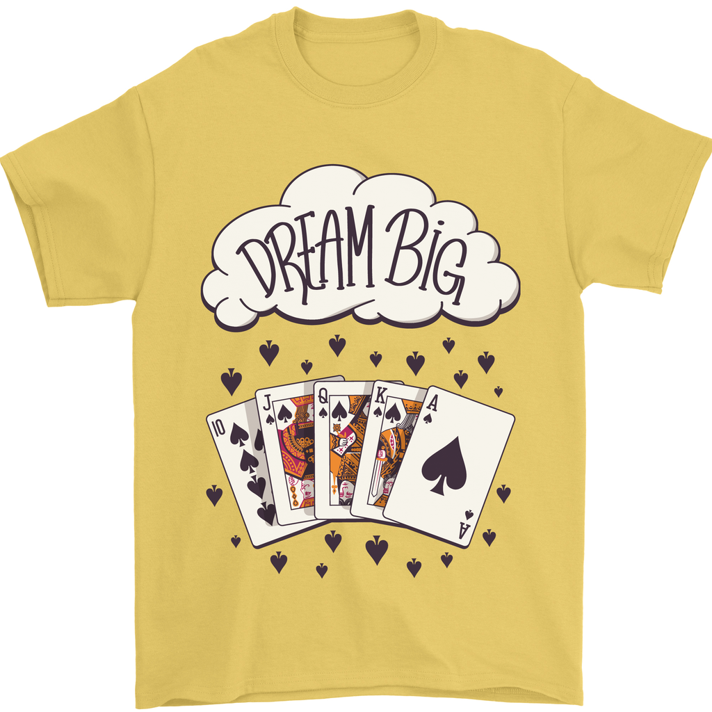 This t-shirt does not compromise on style. It pairs effortlessly with jeans, shorts, or casual trousers, making it a versatile addition to your wardrobe. Available in various sizes, it's designed to fit all body types. Embrace your passion and let your personality shine through with the Poker Dream Big Men's T-Shirt.