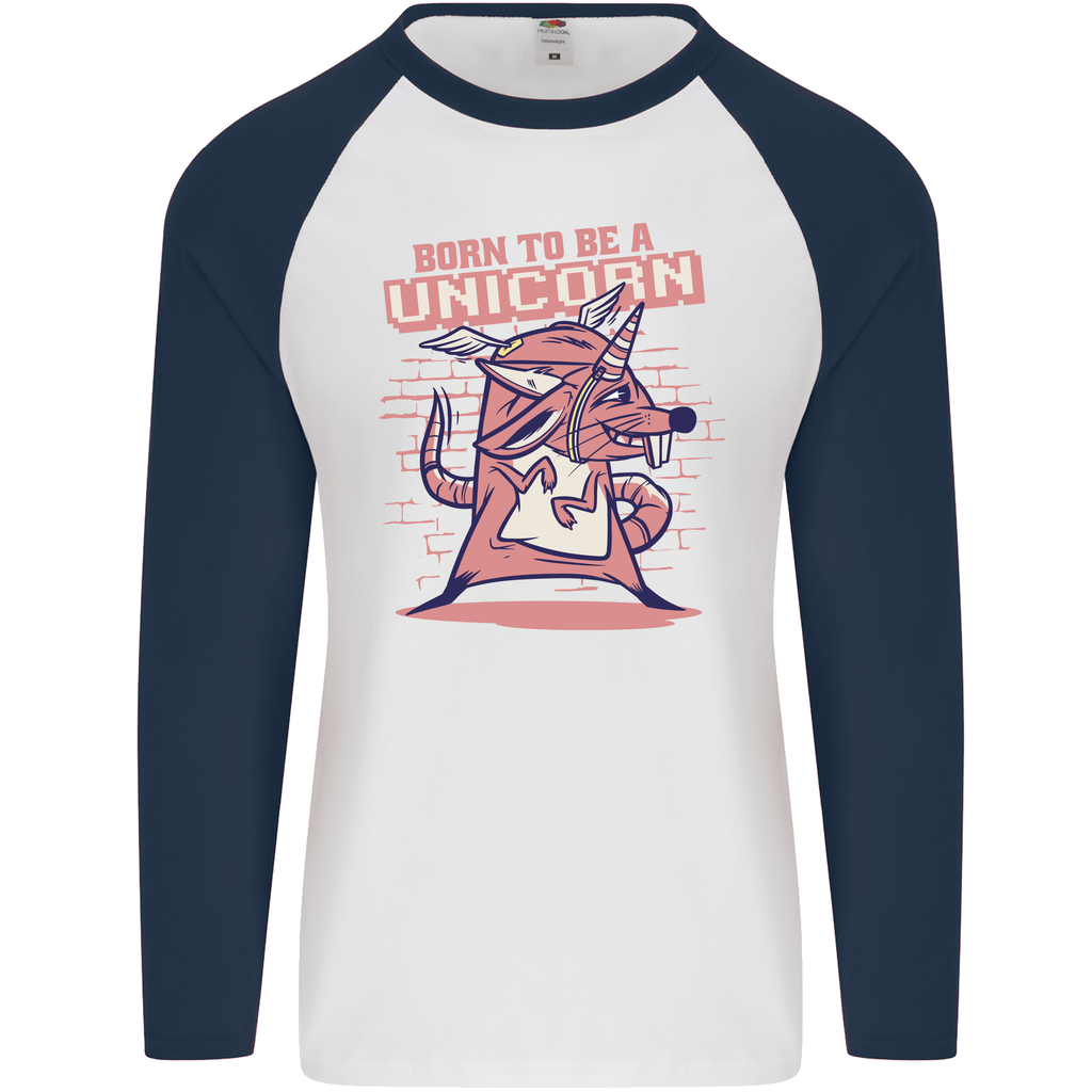 Introducing the A Rat Born To Be a Unicorn Funny Mens L/S Baseball T-Shirt, a whimsical blend of humour and comfort that is sure to make you stand out! This unique tee is perfect for those who appreciate a light-hearted twist on traditional themes. Crafted for the modern man, this long-sleeve baseball shirt combines a classic silhouette with a playful design, making it an ideal addition to your casual wardrobe.