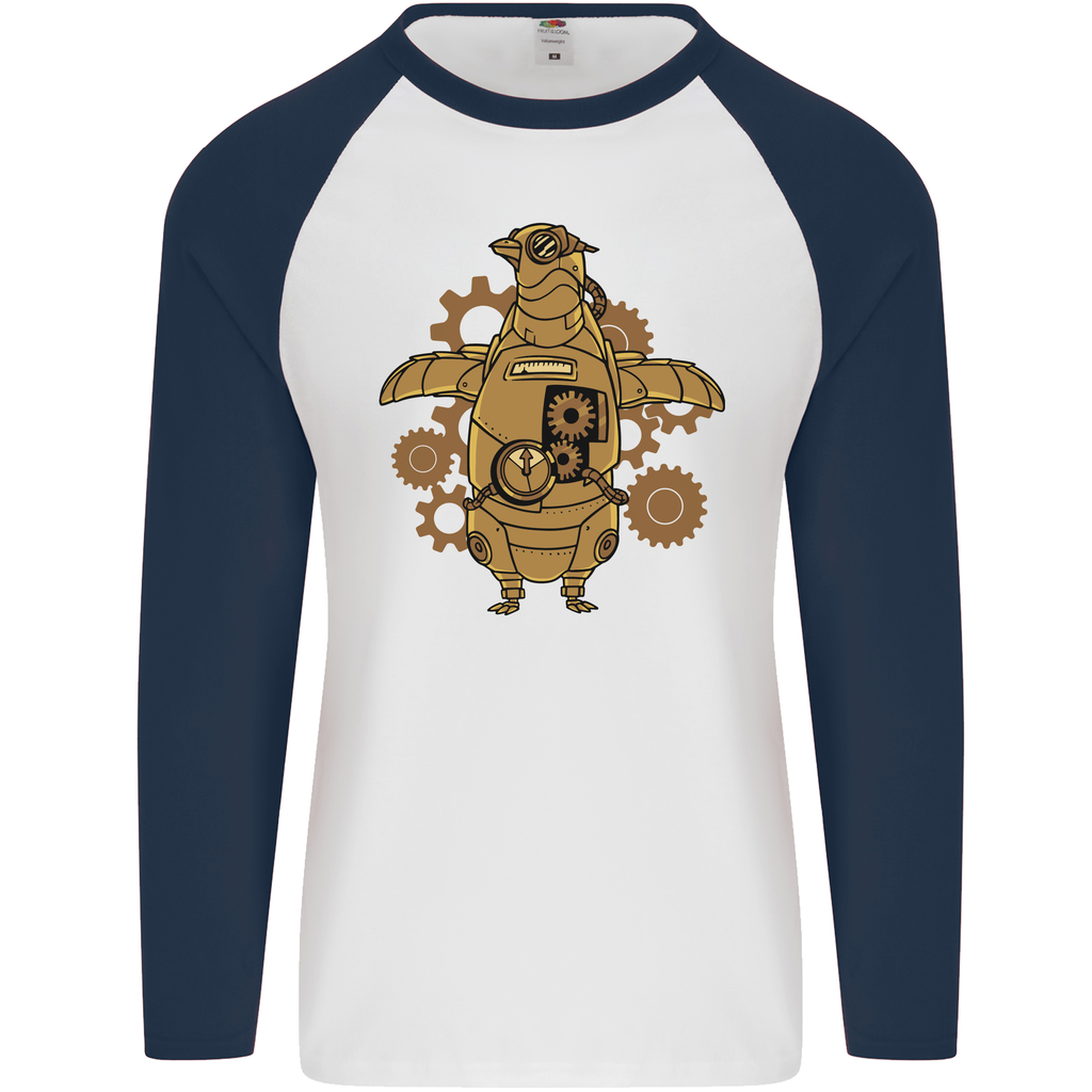 Key features of the Steampunk Penguin Men's Long Sleeve Baseball T-Shirt include:
