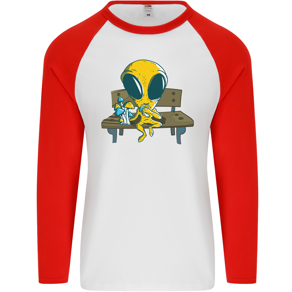 Versatile in style, the An Alien Eating Magic Mushrooms LSD Mens L/S Baseball T-Shirt pairs effortlessly with jeans, shorts, or joggers. It's an excellent choice for music festivals, art shows, or simply as a standout staple in your everyday wardrobe. Don’t miss out on adding this unique piece to your collection—embrace your quirky side and let your style soar!