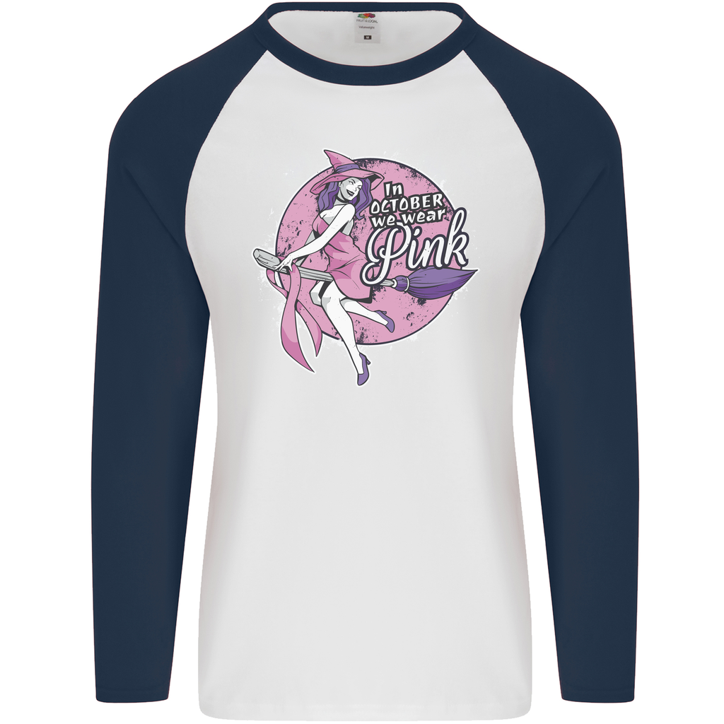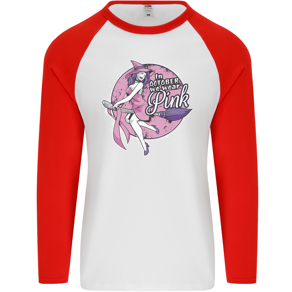 Breast Cancer Awareness Witch Halloween Mens L/S Baseball T-Shirt