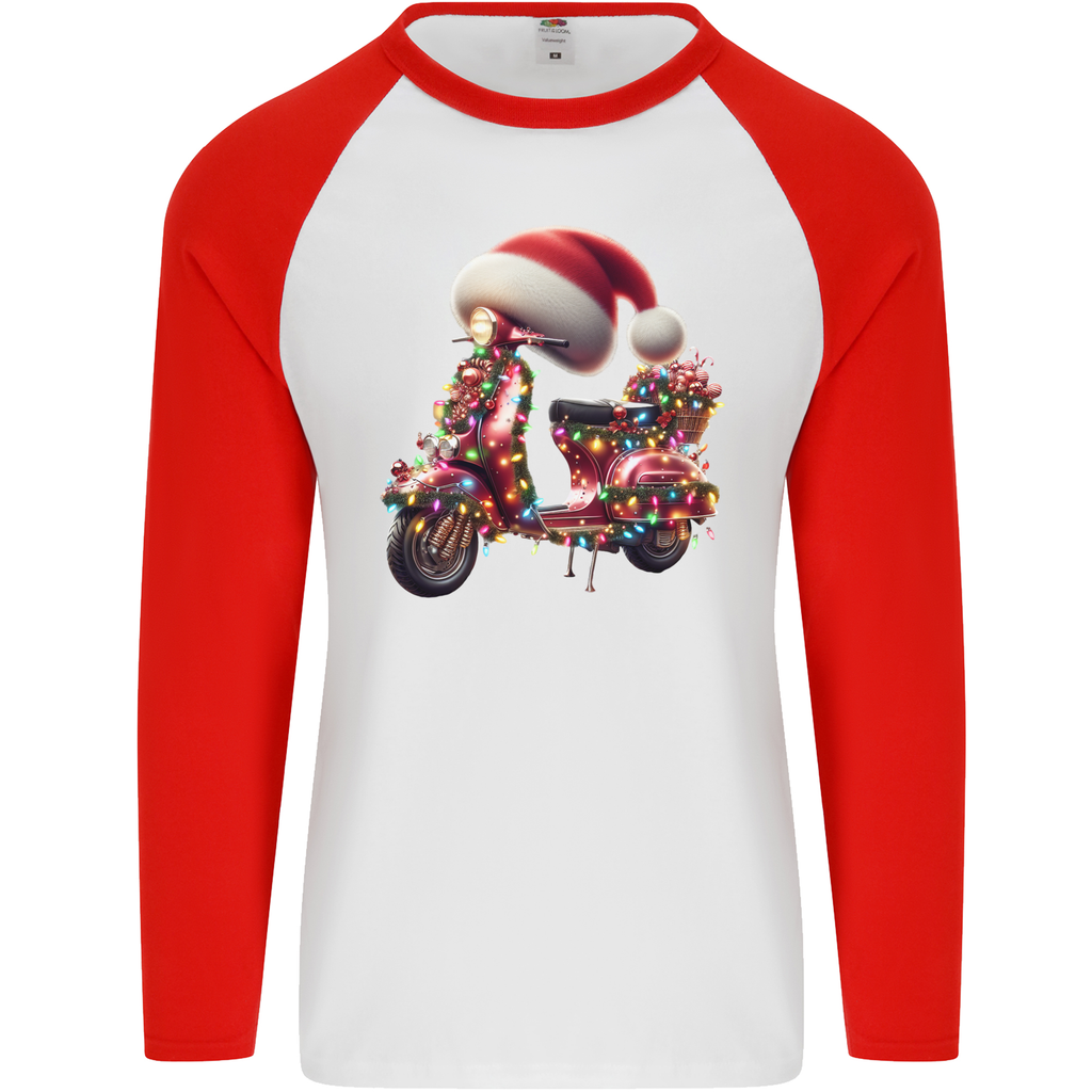 Available in multiple sizes, the Christmas Scooter Xmas Hat MOD Moped Men's Long Sleeve Baseball T-Shirt caters to all body types. Surprise the special men in your life or treat yourself to a unique piece that celebrates the spirit of the holidays.