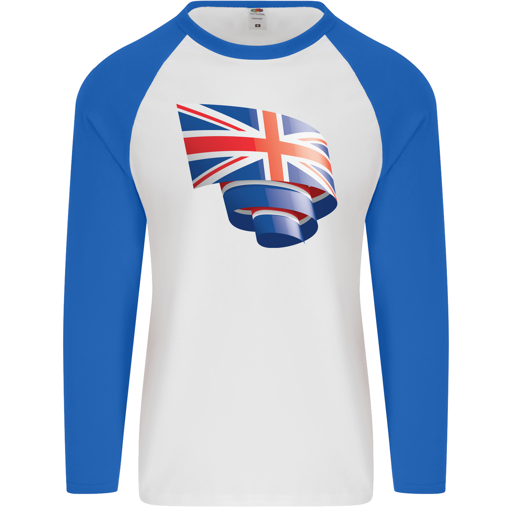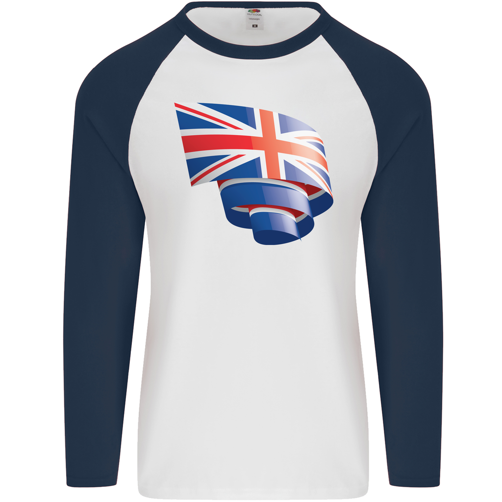 Show your love for Britain with our Curled British Flag Union Jack Britain Men's Long-Sleeve Baseball T-Shirt. This stunning piece of apparel combines style and patriotism, making it an essential addition to any wardrobe. Whether you’re attending a sporting event, celebrating a holiday, or simply want to showcase your British pride, this t-shirt will have you covered.