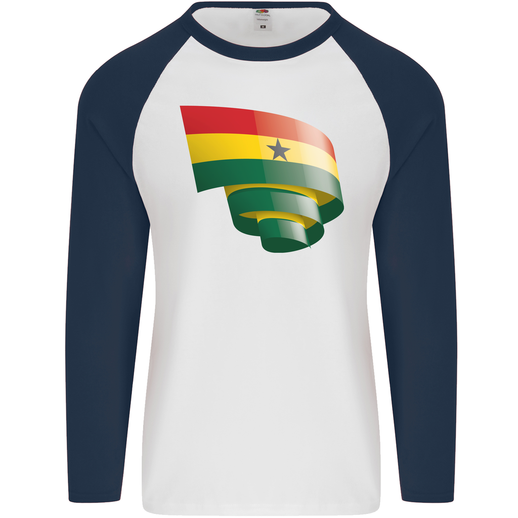 Curled Ghana Flag Ghanaian Day Football Mens L/S Baseball T-Shirt