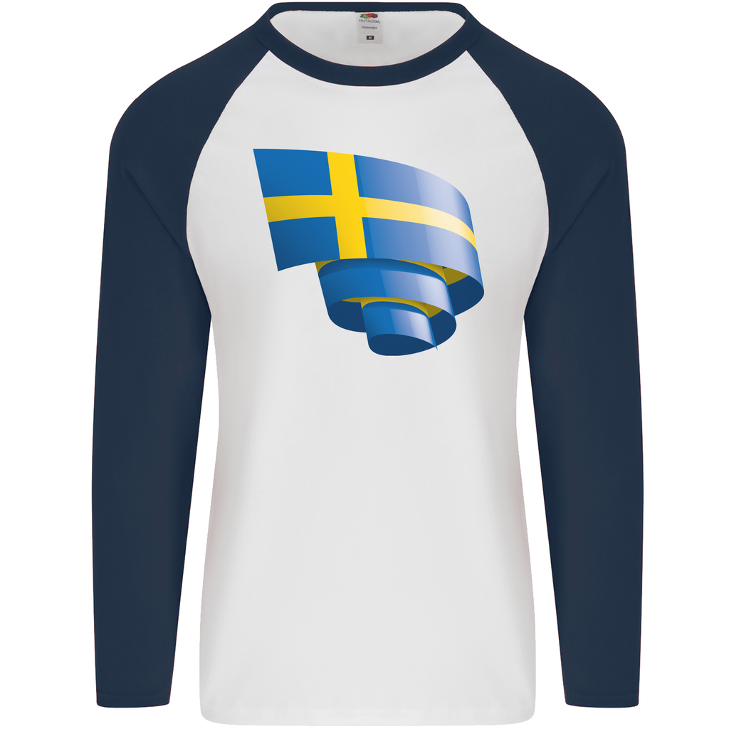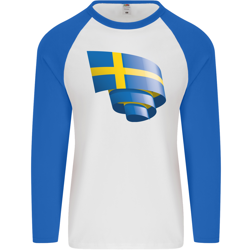 Curled Swedish Flag Sweden Day Football Mens L/S Baseball T-Shirt