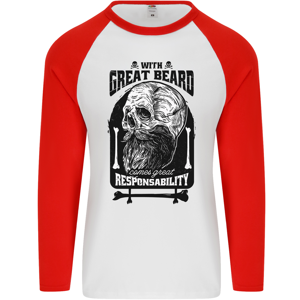 Great Beard Comes Great Responsibility Skull Mens L/S Baseball T-Shirt