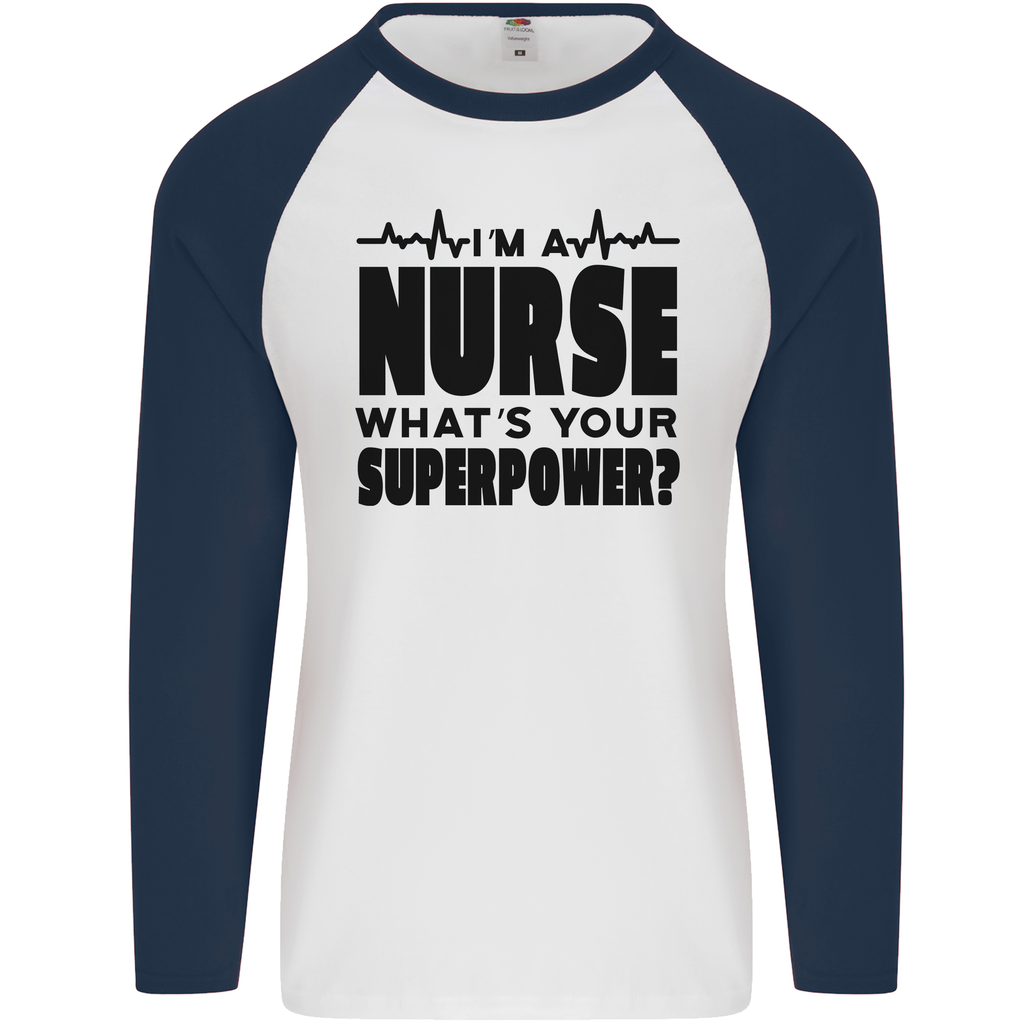 Celebrate your role as a healthcare hero with this stylish, comfortable, and meaningful t-shirt. Order the "I'm a Nurse, What's Your Superpower" Men's Long Sleeve Baseball T-Shirt today and embrace your superpower while making a statement in the world of nursing!