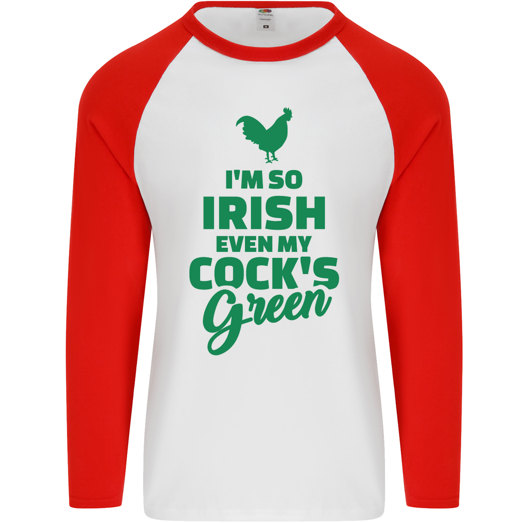 Join in the celebrations and embrace the spirit of Ireland with this fabulous t-shirt. Don't miss out on the chance to make a statement and enjoy the luck of the Irish this St. Patrick's Day. Add the Irish Even My Cock's Green St Patrick's Day Men's Long Sleeve Baseball T-Shirt to your wardrobe and get ready to turn heads!