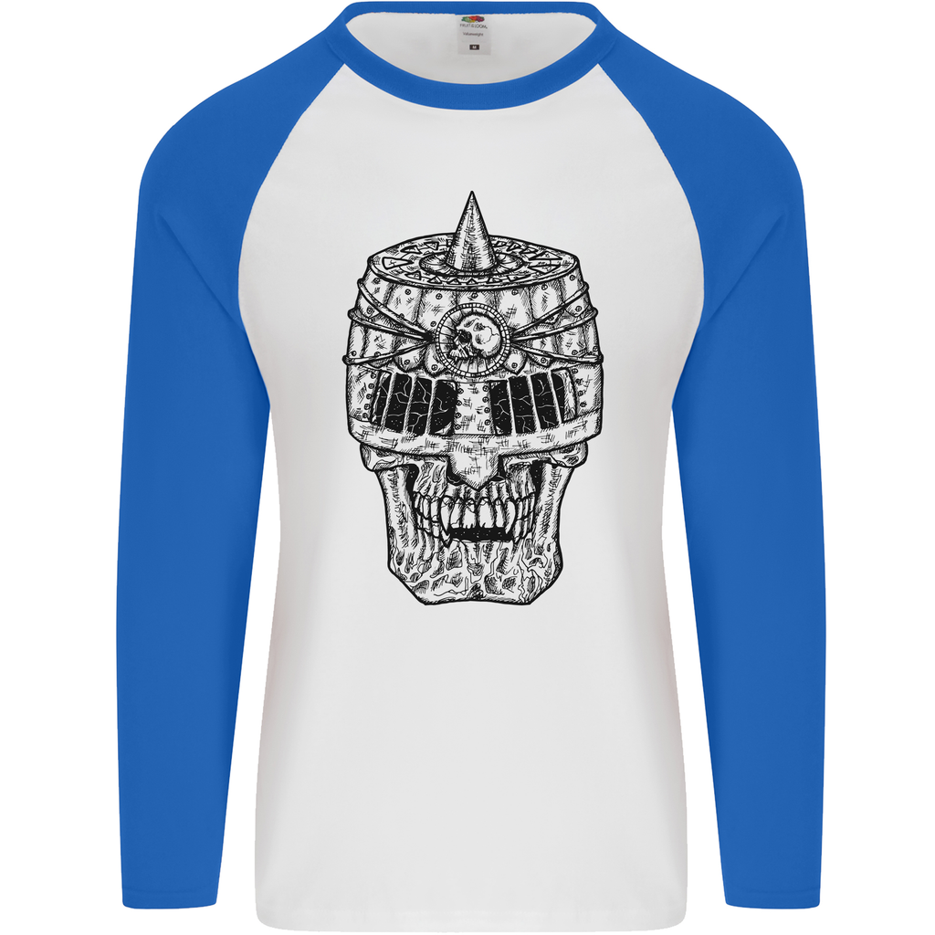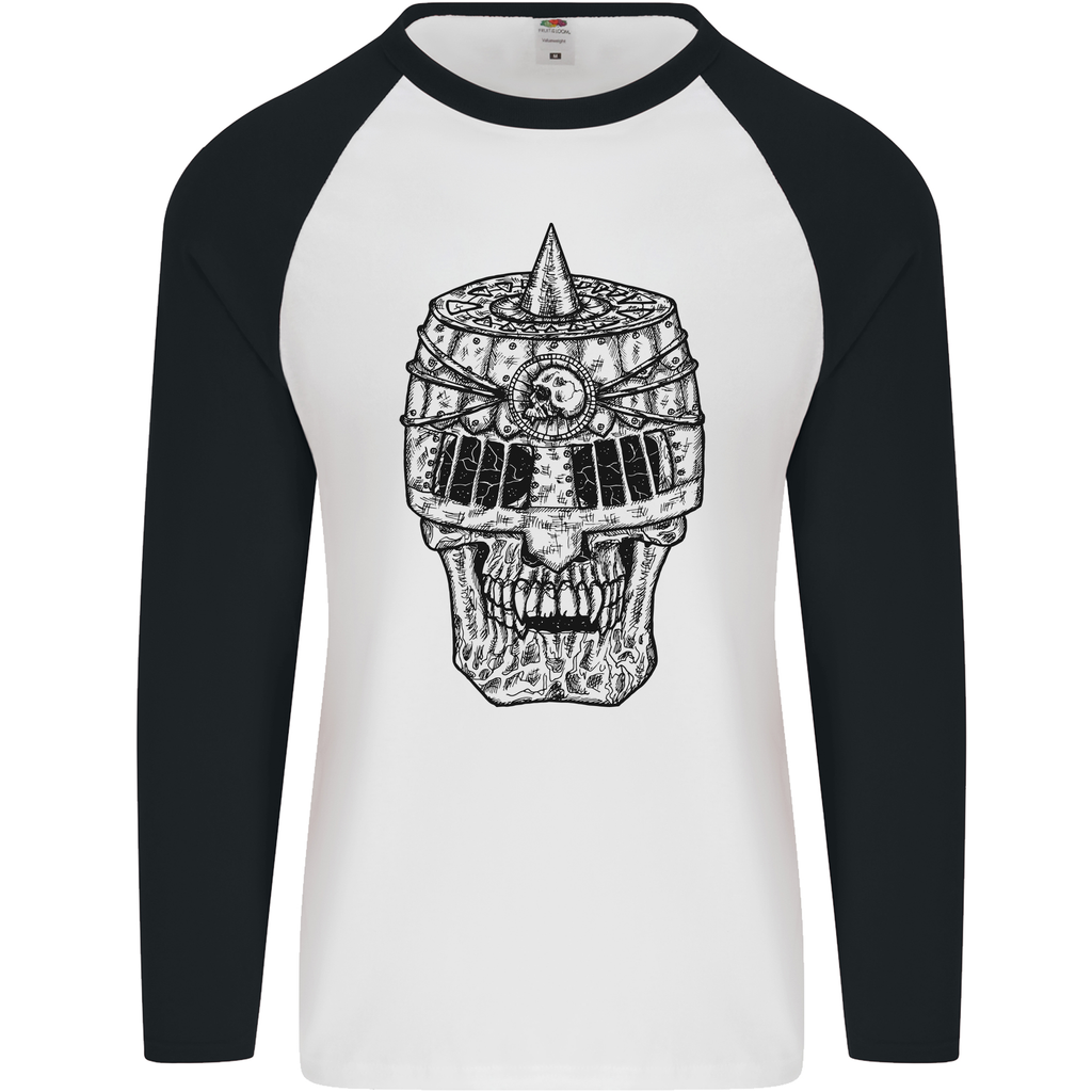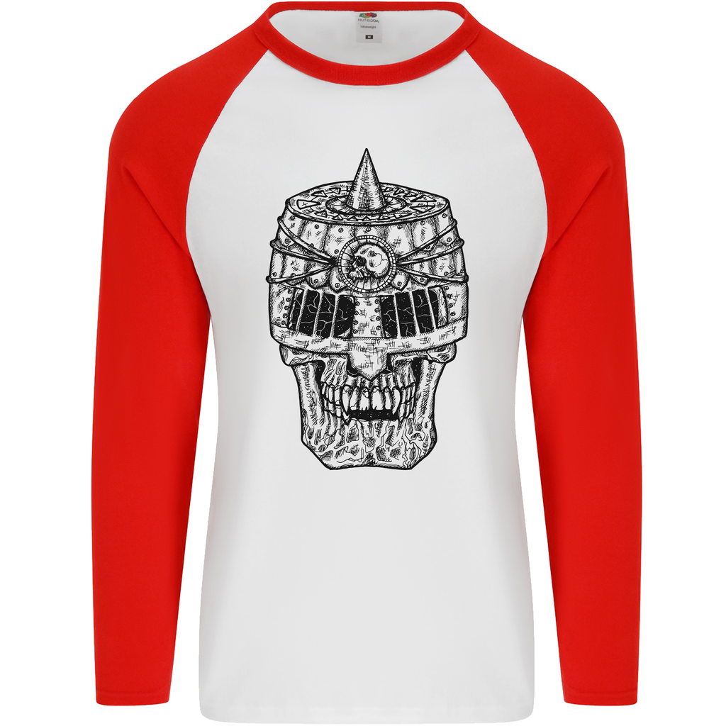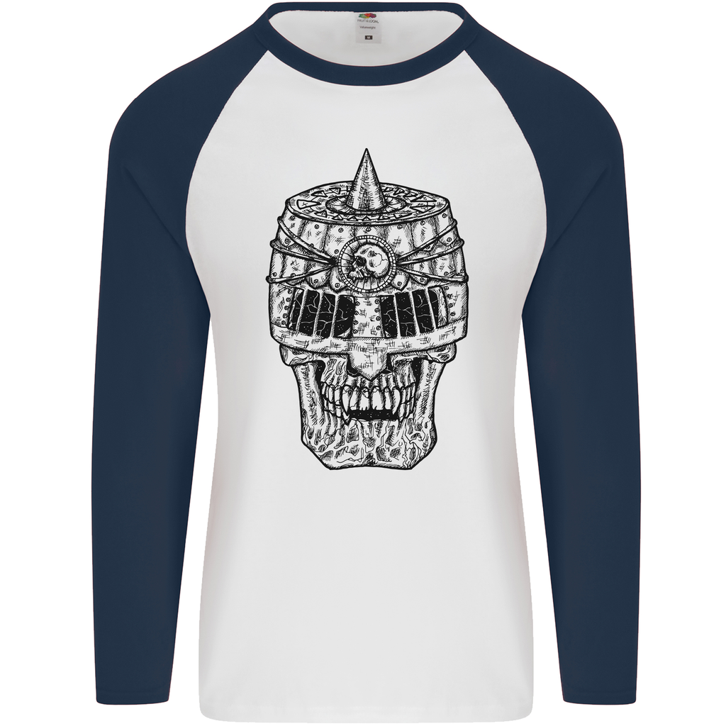 Explore your adventurous side and channel the spirit of a knight with this Medieval Skull Helmet Men's Long Sleeve Baseball T-Shirt. It’s not just a t-shirt; it's a lifestyle choice. With its easy-care fabric, you can enjoy its appeal without the worry of complicated maintenance. Available in various sizes, this shirt is perfect for any medieval enthusiast looking to make a bold statement.