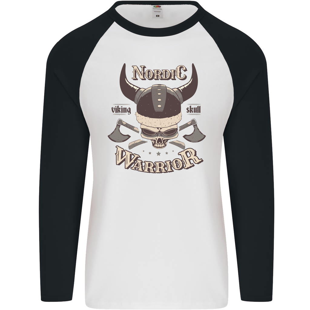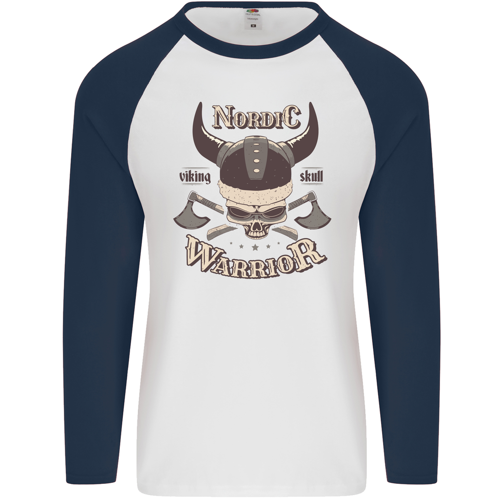 Nordic Warrior Viking Skull Mens L/S Baseball T-Shirt