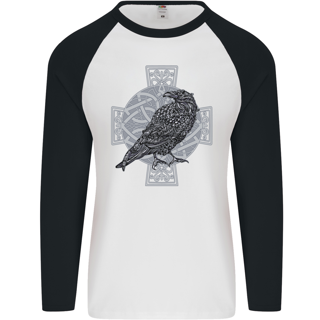 Odin Celtic Raven Viking Tattoo Cross Runic Mens L/S Baseball T-Shirt