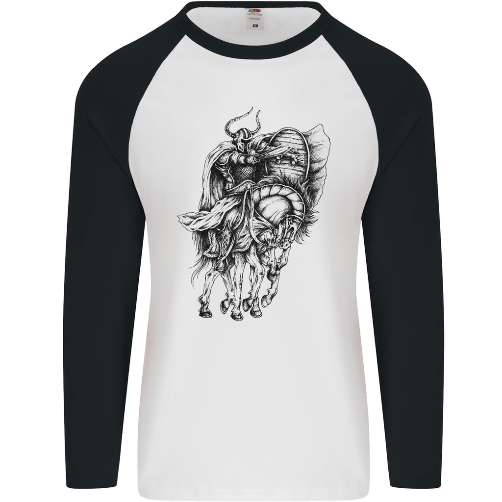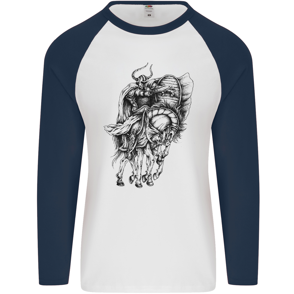 Step into the realm of Norse mythology with the stunning Odin the Viking on Horseback Valhalla Gods Men’s Long Sleeve Baseball T-Shirt. This unique piece of apparel combines style and comfort, making it the perfect addition to any warrior's wardrobe. Crafted for those who honour the adventurous spirit of the Vikings, this t-shirt showcases a powerful image of Odin, the legendary god, astride his majestic steed, providing an epic reminder of strength and bravery.