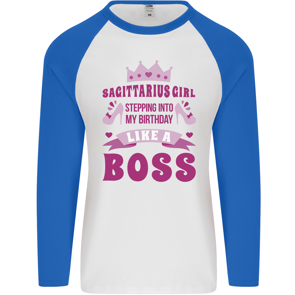 Celebrate the special milestone of a Sagittarius girl with our unique astrology-themed 21st, 30th, 40th, or 50th Men's Long Sleeve Baseball T-Shirt. This stylish and comfortable shirt is perfect for birthday celebrations or casual outings. It proudly showcases the fiery spirit of those born under the Sagittarius sign, known for their adventurous nature, enthusiasm, and vibrant personality.