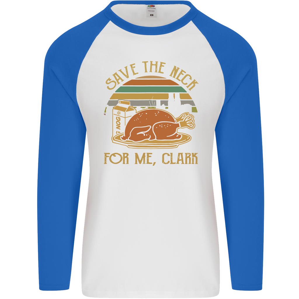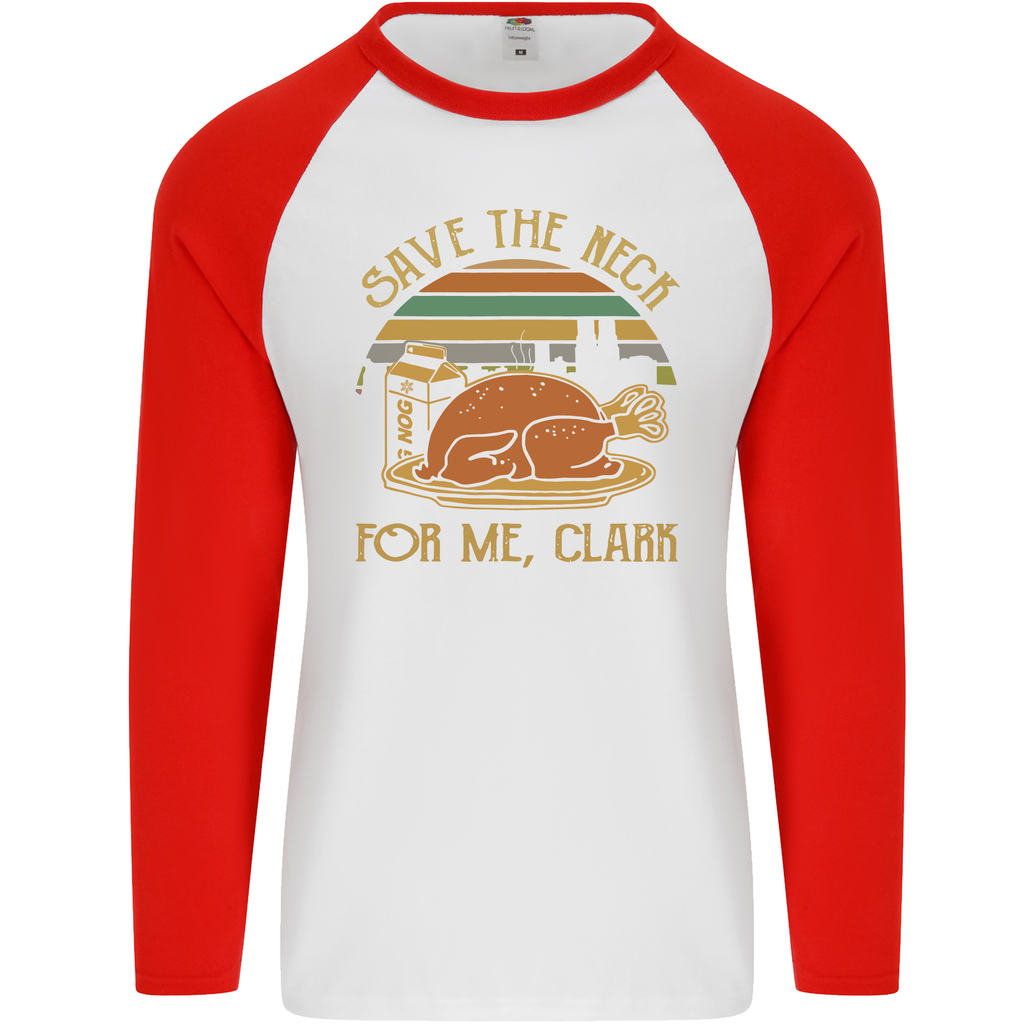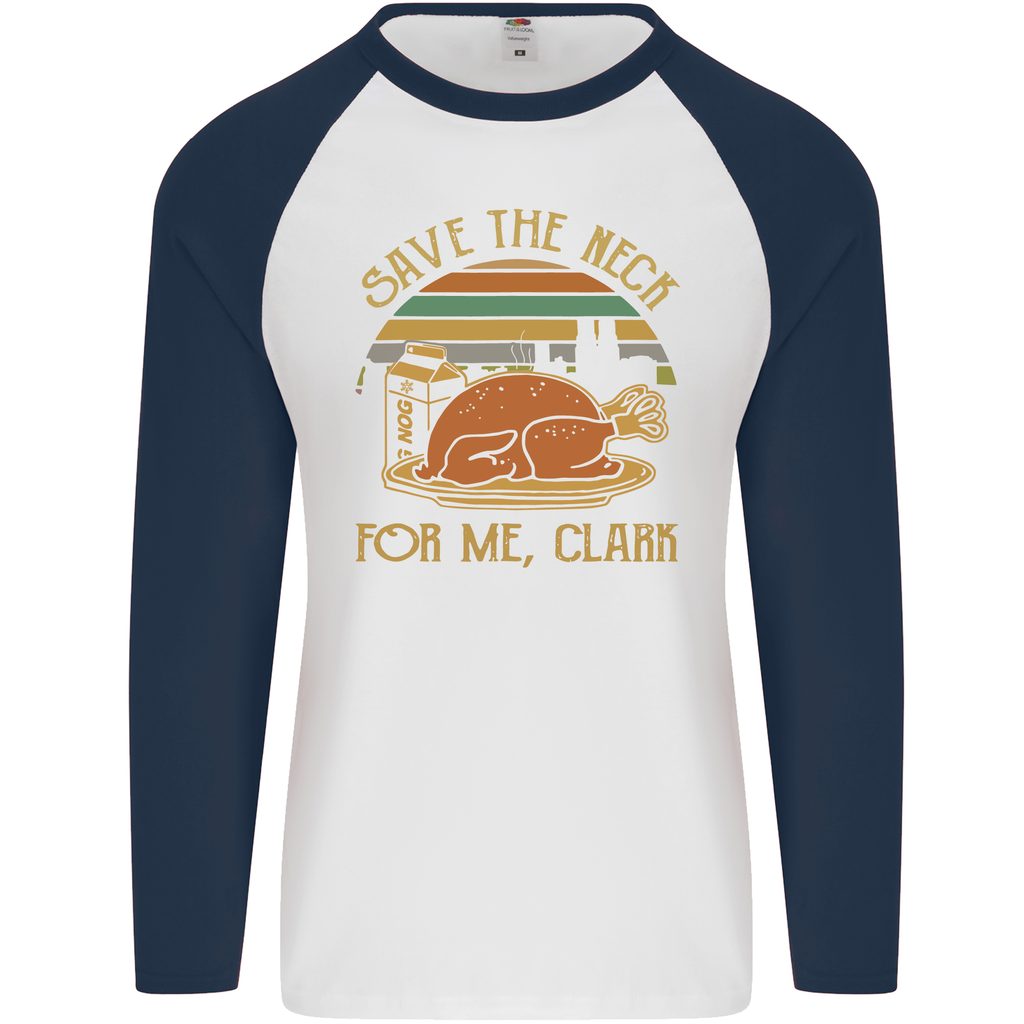 Get ready to celebrate the holiday season in style with the "Save the Neck For Me Clark" Christmas Movie Men's Long Sleeve Baseball T-Shirt! Inspired by the timeless classic film "National Lampoon’s Christmas Vacation," this playful and festive shirt is perfect for fans who appreciate a hearty dose of holiday cheer.