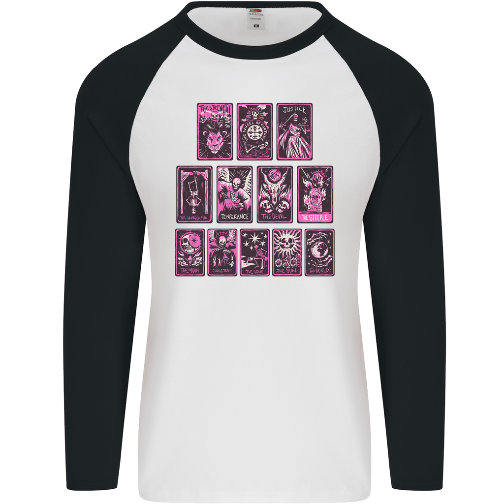 Make a bold statement with our Tarot Cards Fortune Teller Skulls Mens L/S Baseball T-Shirt. Perfect as a gift for fellow tarot lovers or as a treat for yourself, it’s time to embrace the unknown and wear your beliefs proudly. Don’t miss out on the chance to add this standout piece to your wardrobe today!