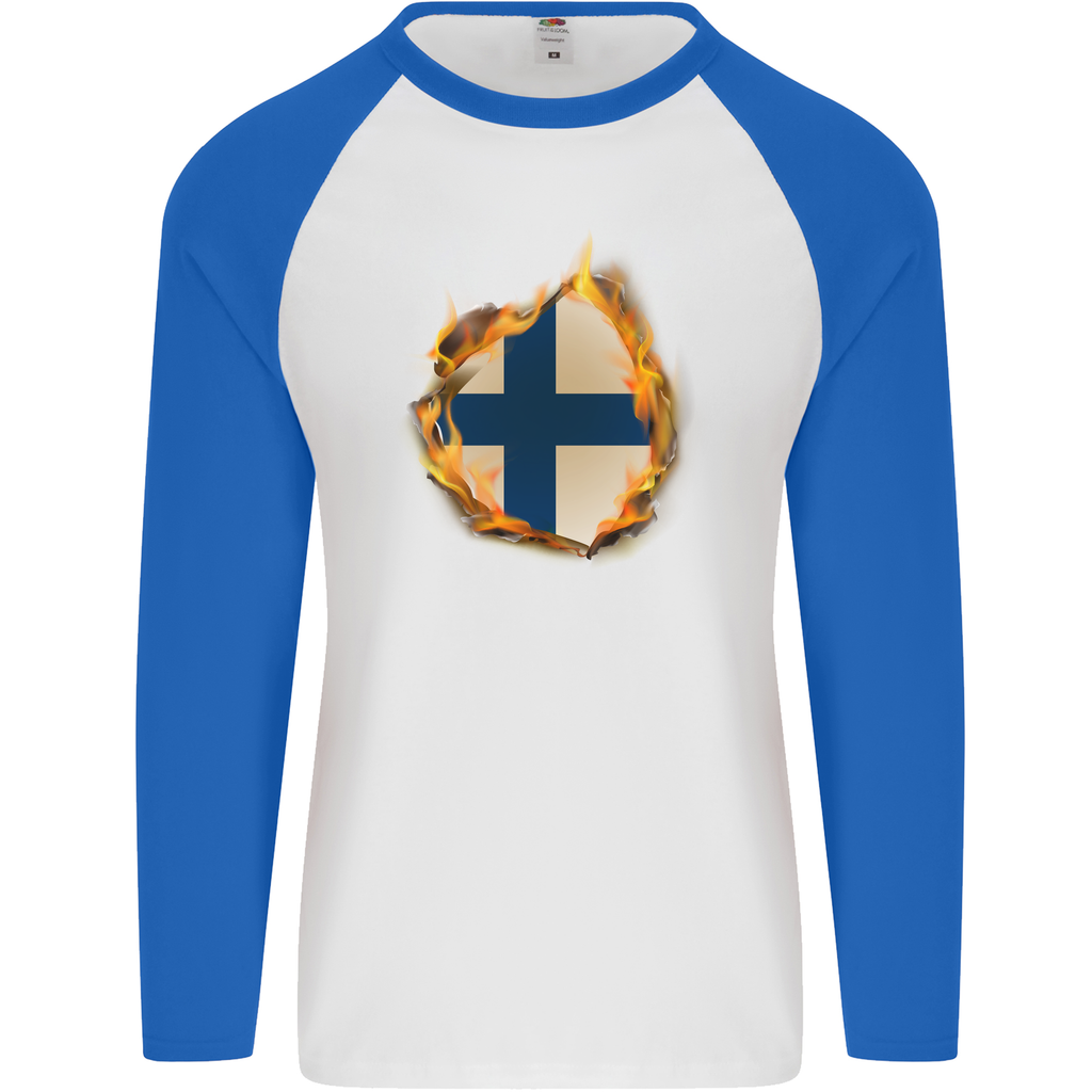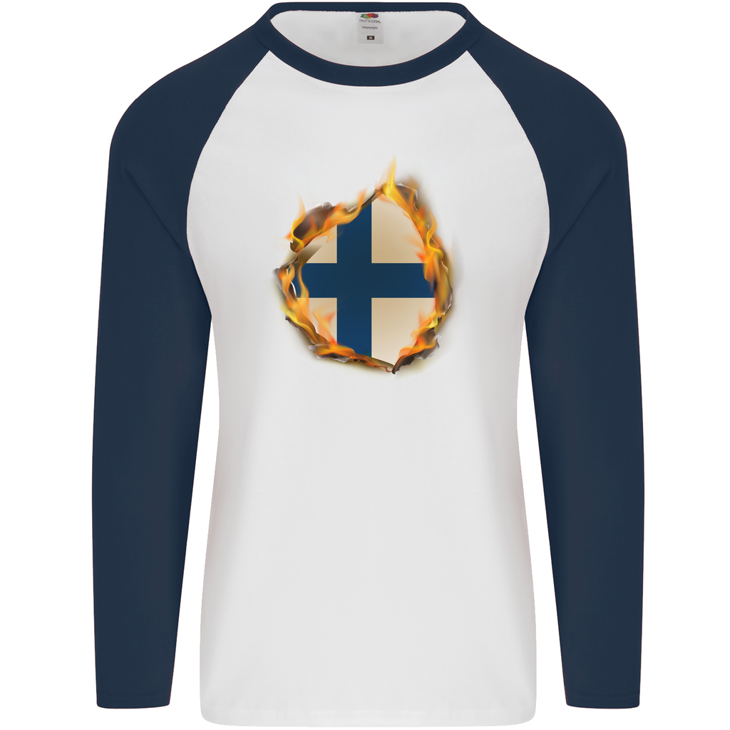 Show your passion for Finland with the Finnish Flag Fire Effect Men's Long Sleeve Baseball T-Shirt. This striking garment combines comfort and style, making it the perfect choice for everyday wear or special events. Crafted from high-quality cotton, it ensures a soft feel against your skin while allowing for breathability. The eye-catching fire effect design showcases the Finnish flag, creating a bold statement that reflects your national pride.