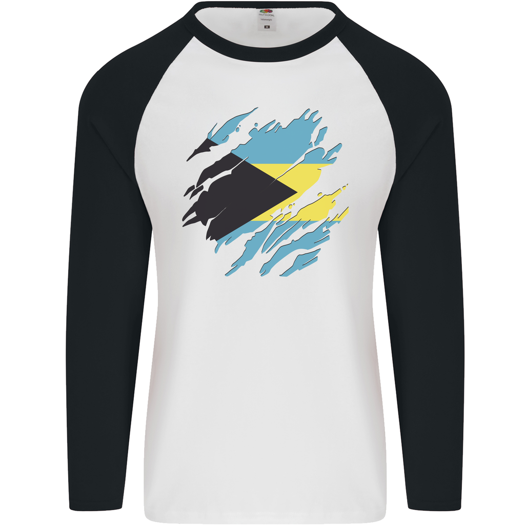 Introducing the Torn Bahamas Flag Bahamians Day Football Mens L/S Baseball T-Shirt, a perfect blend of style and comfort. Celebrate Bahamian pride while staying fashionable and relaxed. This unique long-sleeve tee is designed specifically for those who cherish their heritage and want to showcase it in a fun and sporty way. Whether you're cheering from the stands, hanging out with friends, or enjoying a casual day out, this T-shirt makes a bold statement.