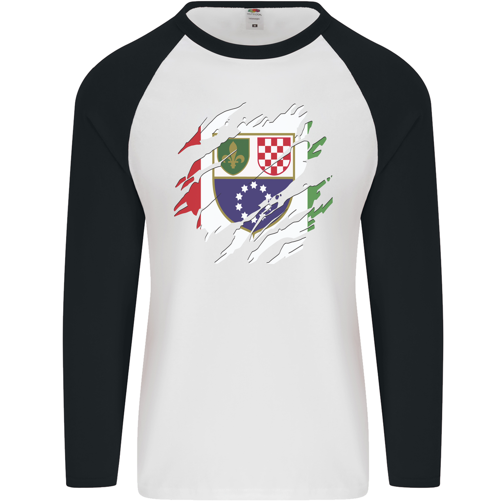 Torn Bosnia and Herzegovina Flag Day Football Mens L/S Baseball T-Shirt