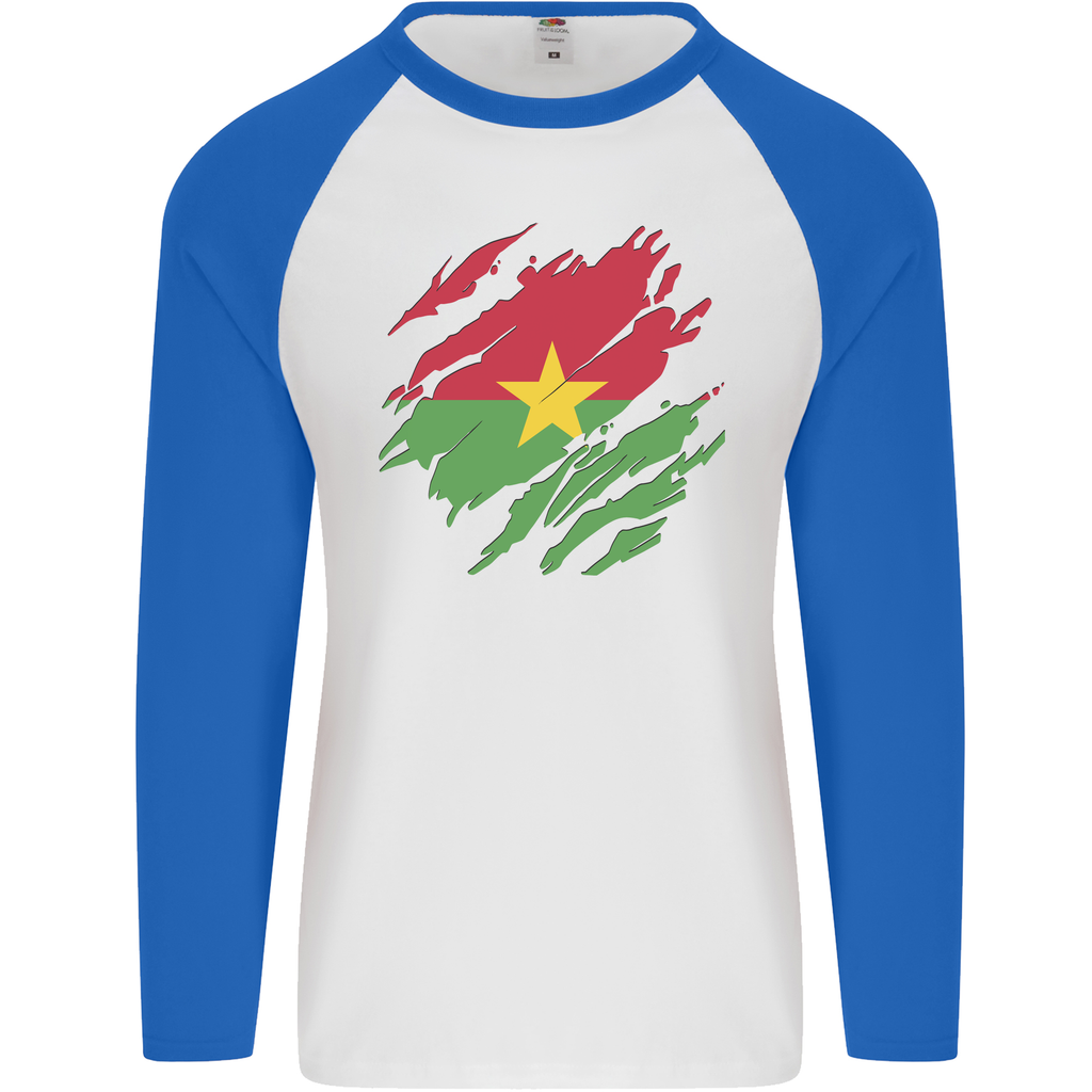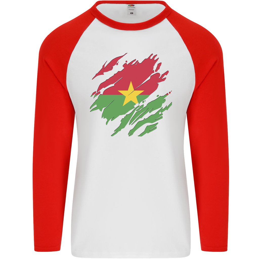 Available in various sizes, the Torn Burkina Faso Flag Day Football Mens L/S Baseball T-Shirt caters to all body types. Whether you're treating yourself or searching for the perfect gift for a football fanatic, this shirt is a fantastic choice that radiates enthusiasm and support for Burkina Faso.